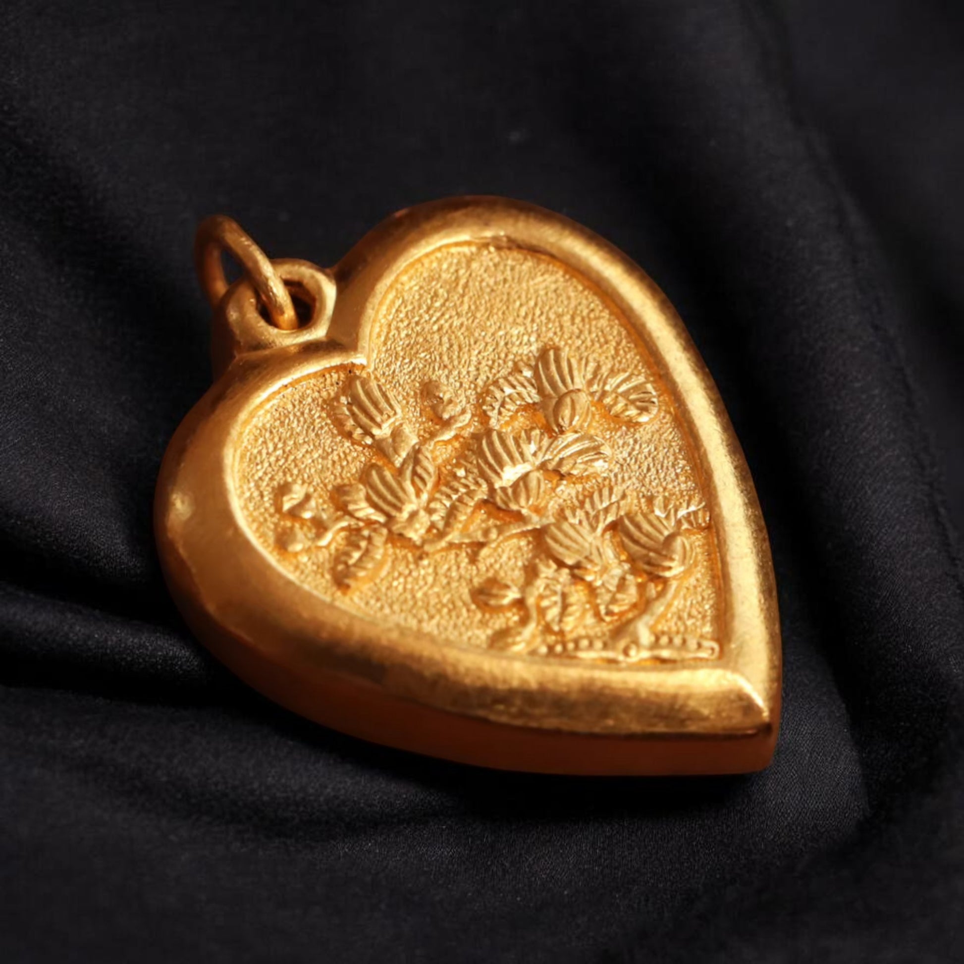 24K 999 Gold Engraved Bird Heart-Shaped Pendant