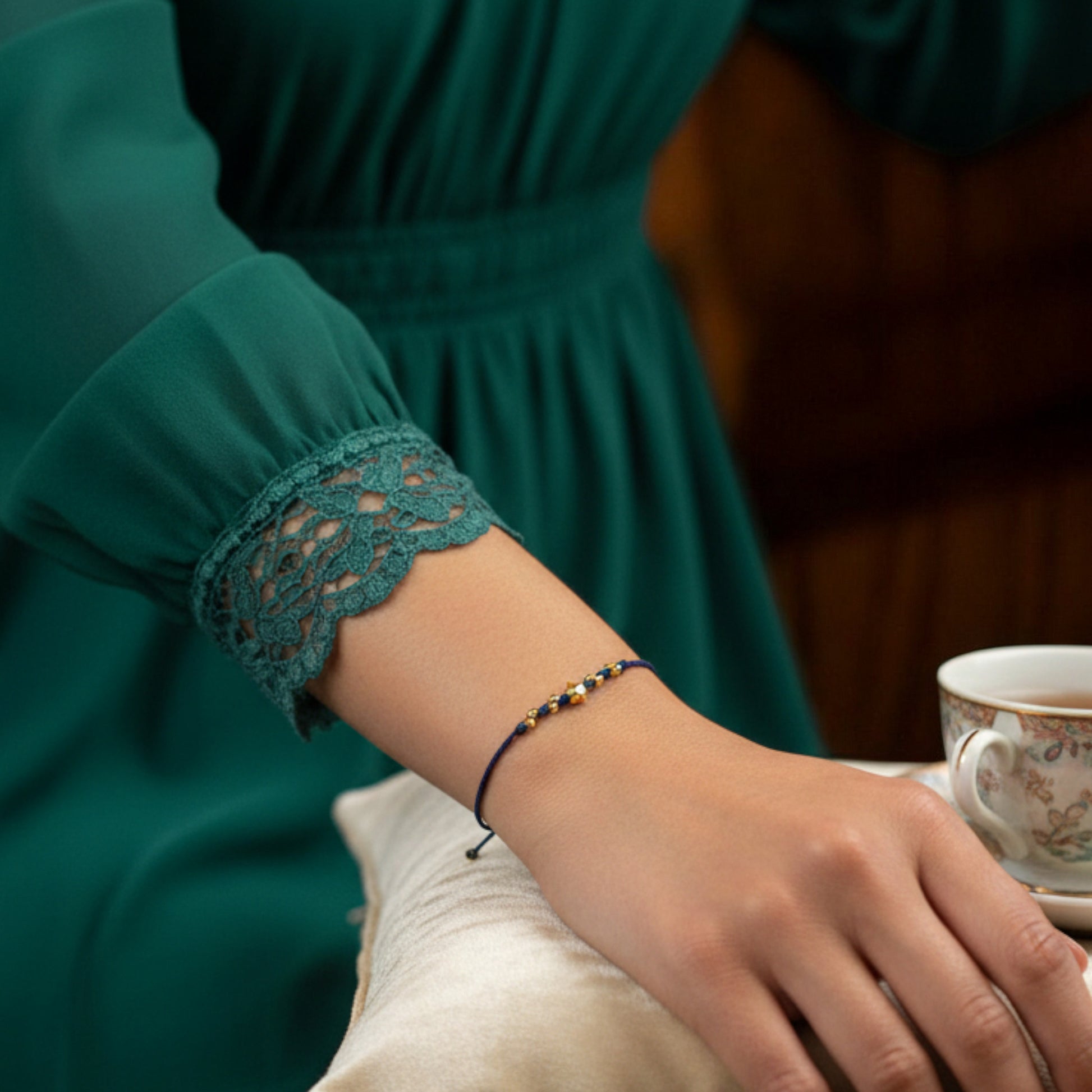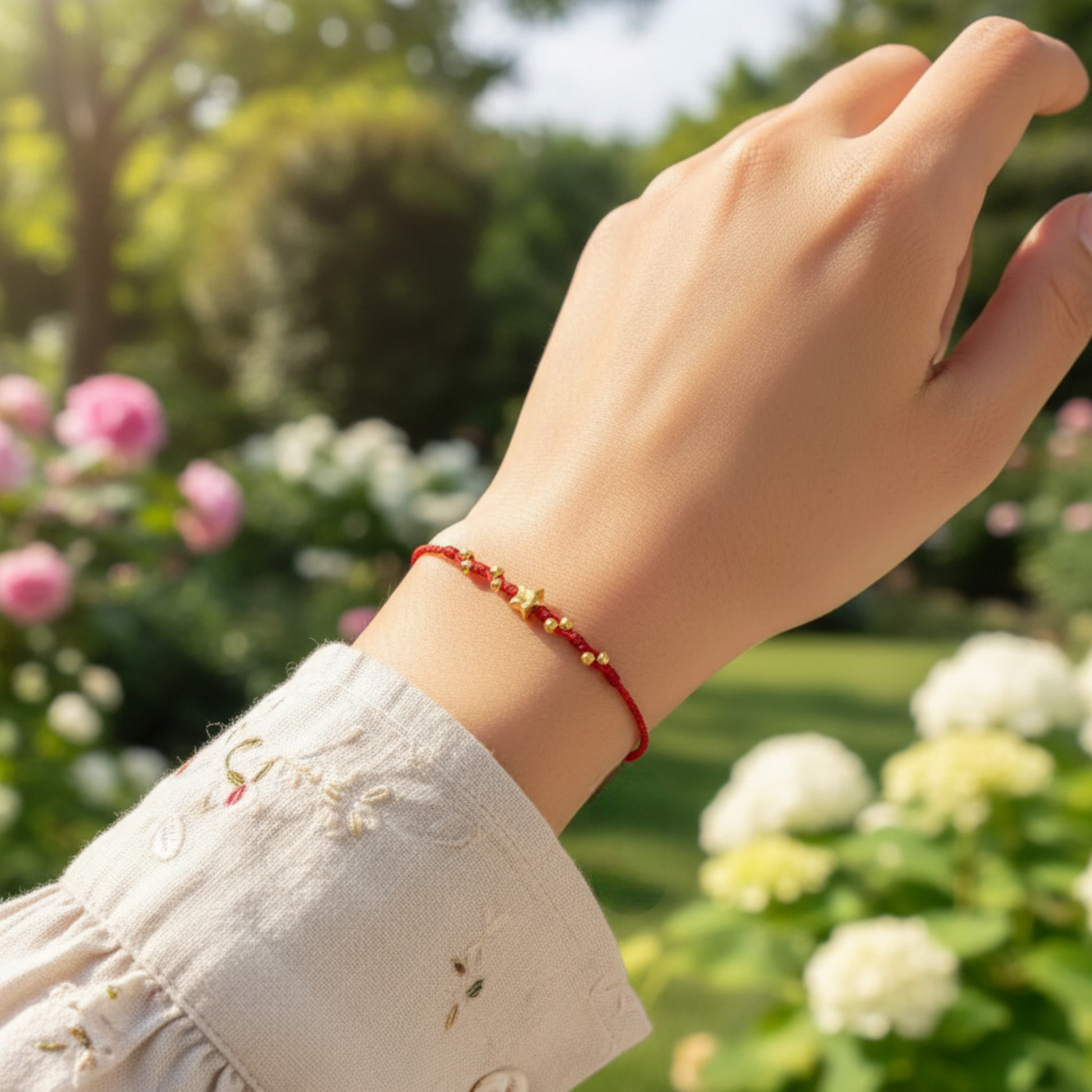 Material: 24K Solid gold charms. Braided rope non-allergenic and non-fading.The thread is made of extremely fine waxed thread, and the finished thickness is approximately 1.1mm. It's quite thin. The waxed thread is water-resistant, so you can wear it while showering.