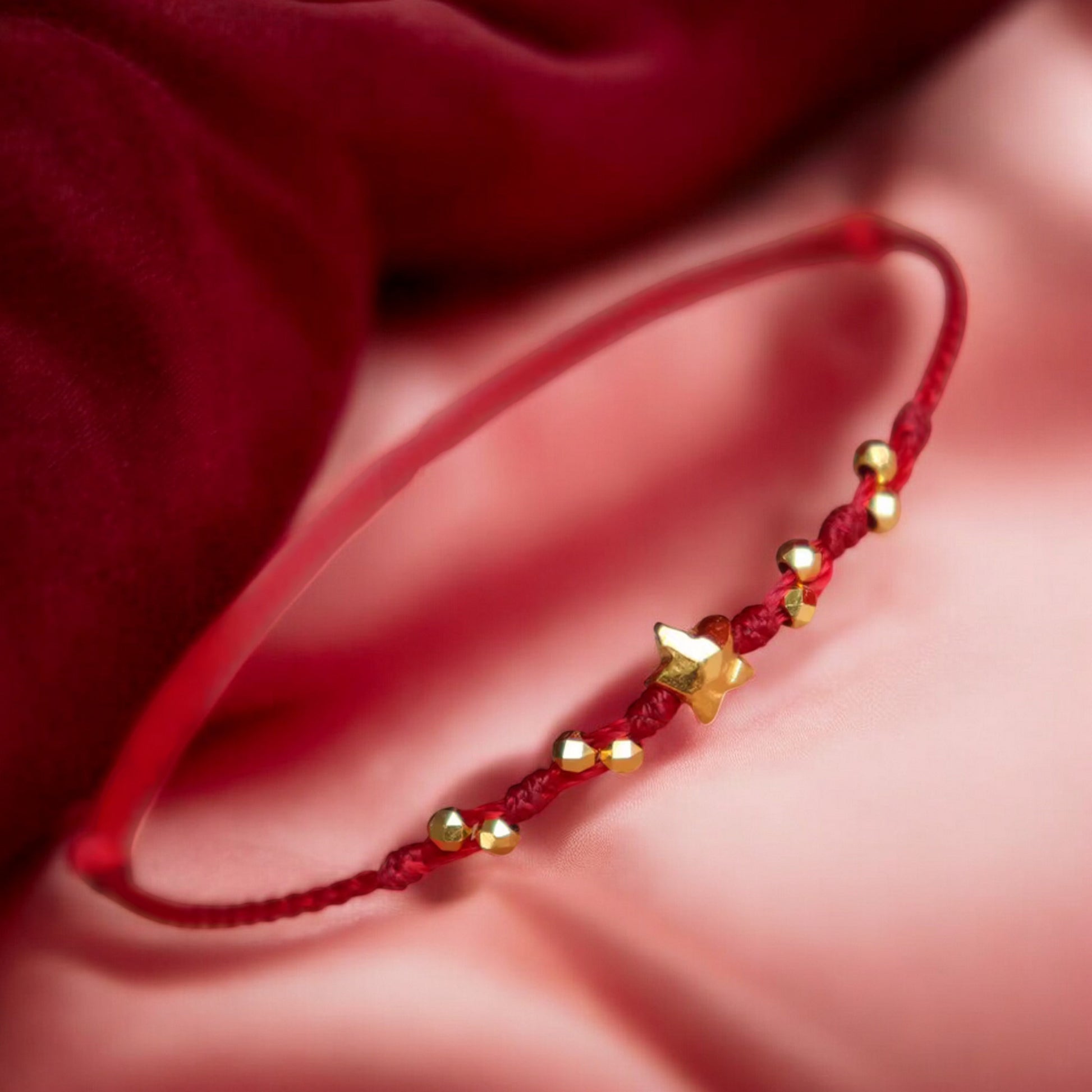 24k 999 Gold Star Beads Charm Adjustable Length Braided Rope Bracelet