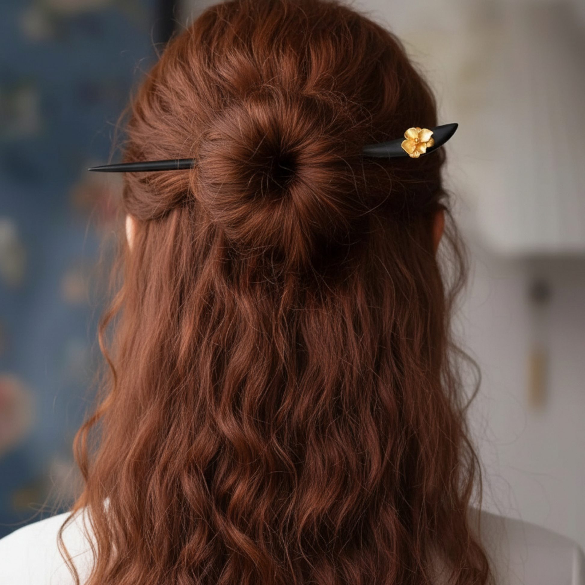 Crafted from premium 24K 999 gold and sustainably sourced wood, this Asian-inspired hairpin merges traditional artistry with refined elegance. The delicate flower motif showcases meticulous detailing, while the lightweight wooden construction ensures comfortable all-day wear. Perfect for upswept styles, formal occasions, or adding an understated touch of sophistication to everyday looks. A timeless accessory that honors heritage craftsmanship.