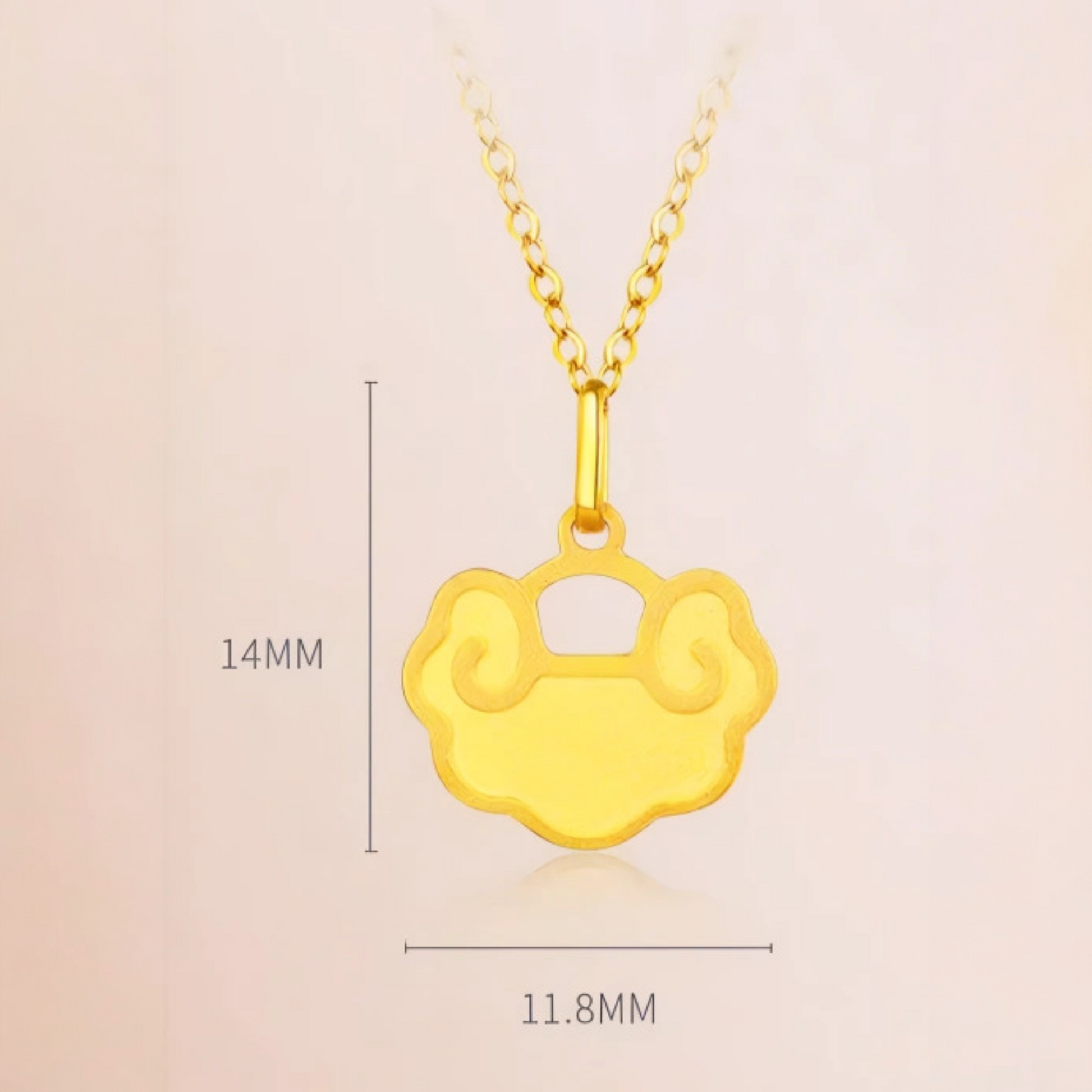 24K 999 Gold Luxurious Chinese Style Lucky Cloud Ruyi Lock Pendant