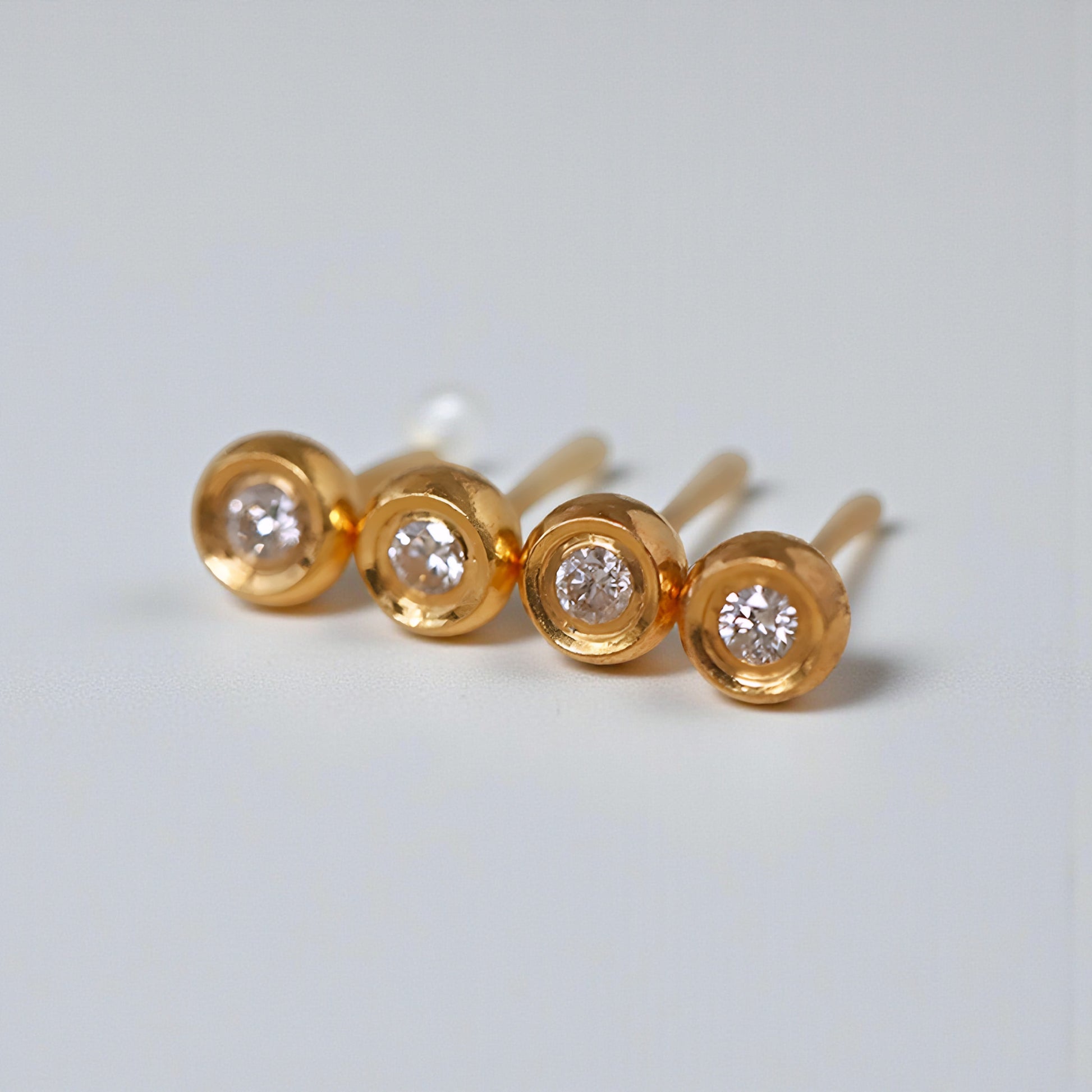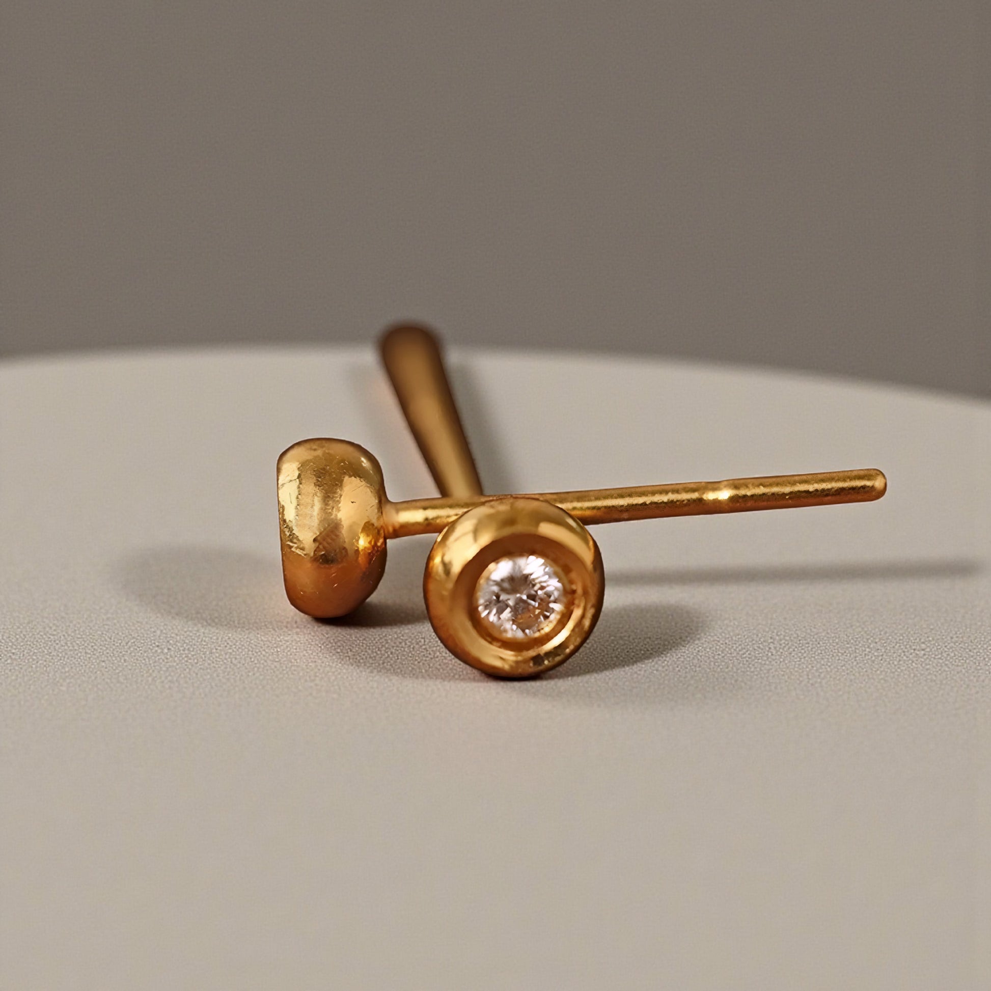 24K 999 Gold Minimal Minimalist Round Diamond Stud Earrings