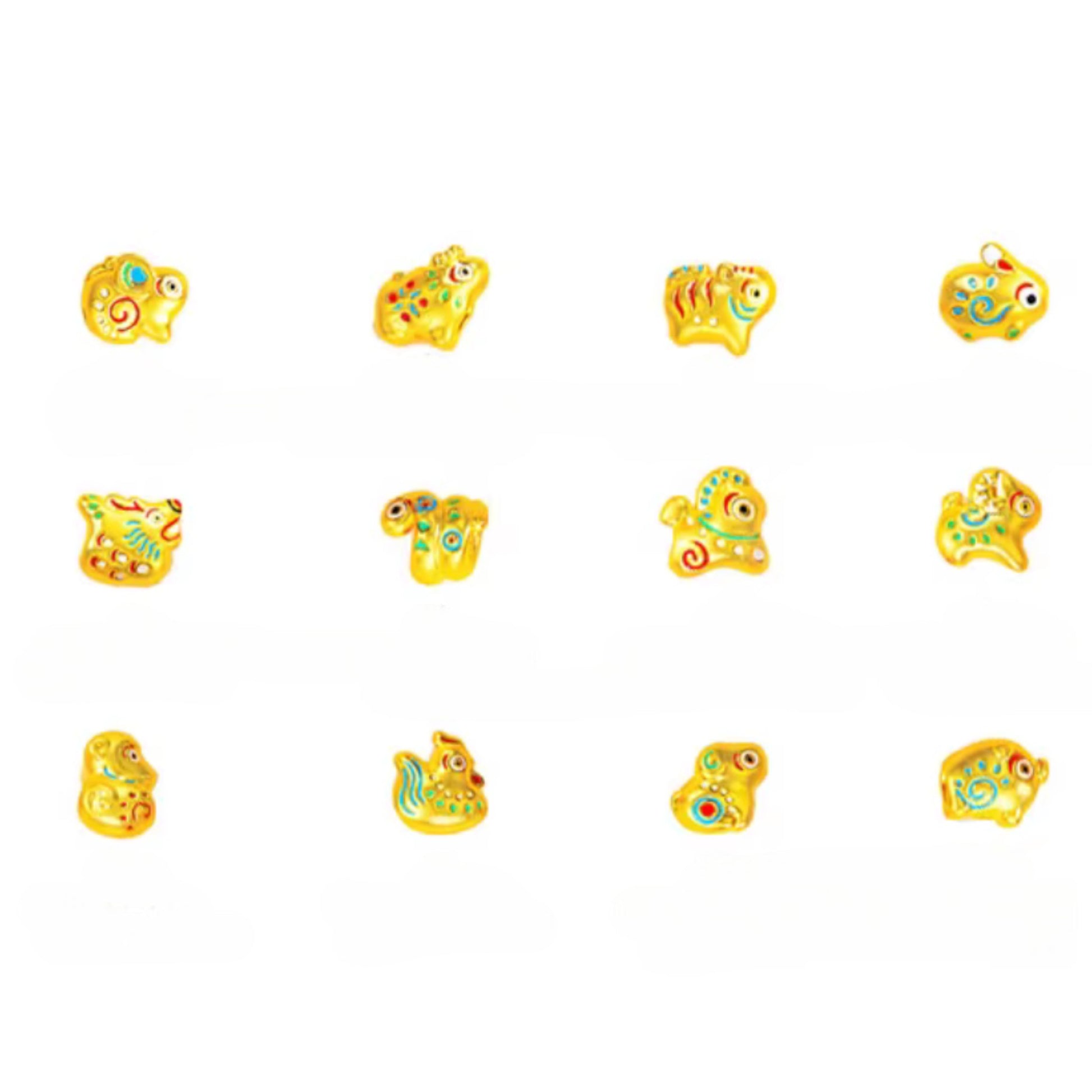 24K 999 Gold Mini Cute Enamel Chinese Zodiac Animal D.I.Y Charm Spacer Bead