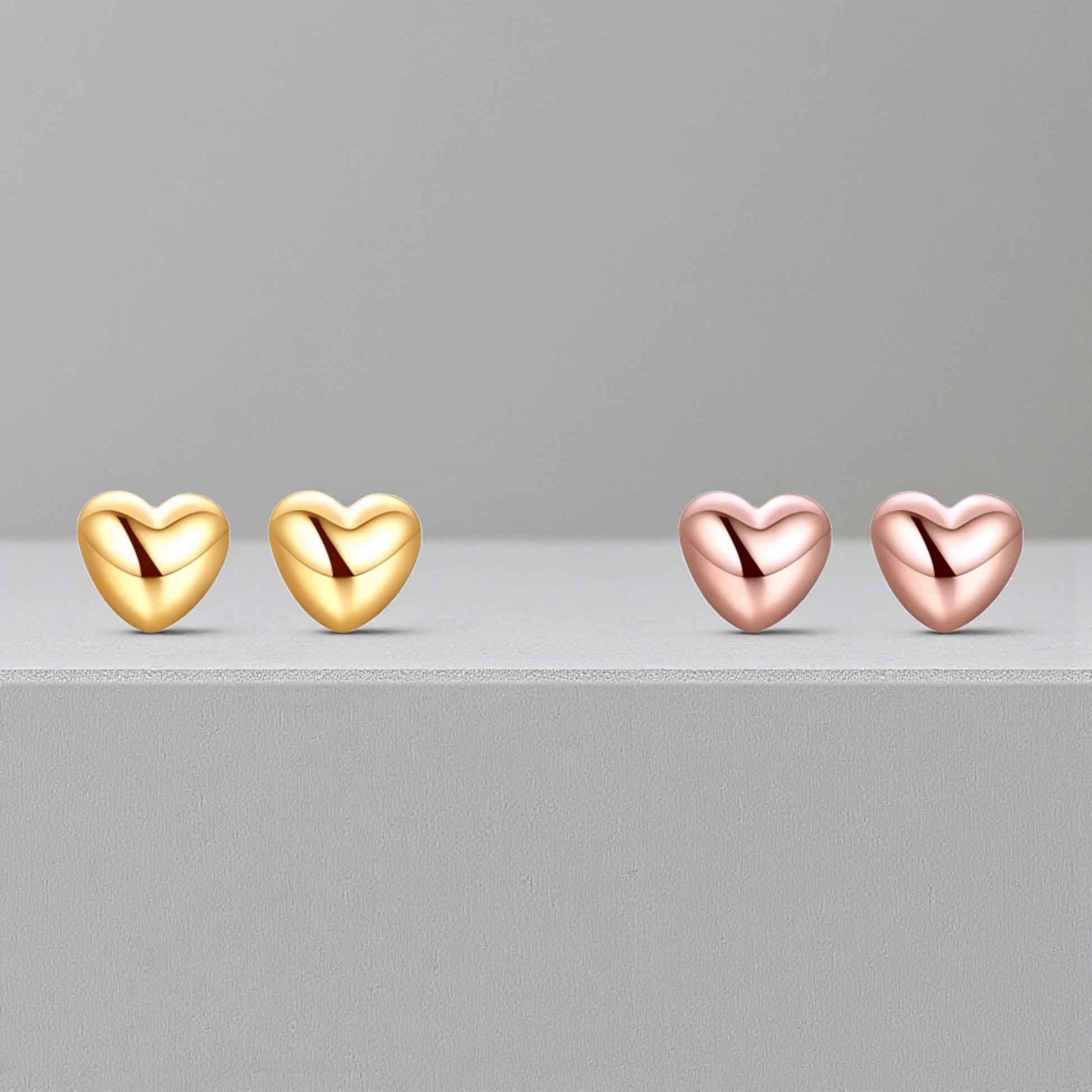 18k Yellow Gold Rose Gold Minimal Simple Heart Stud Earrings