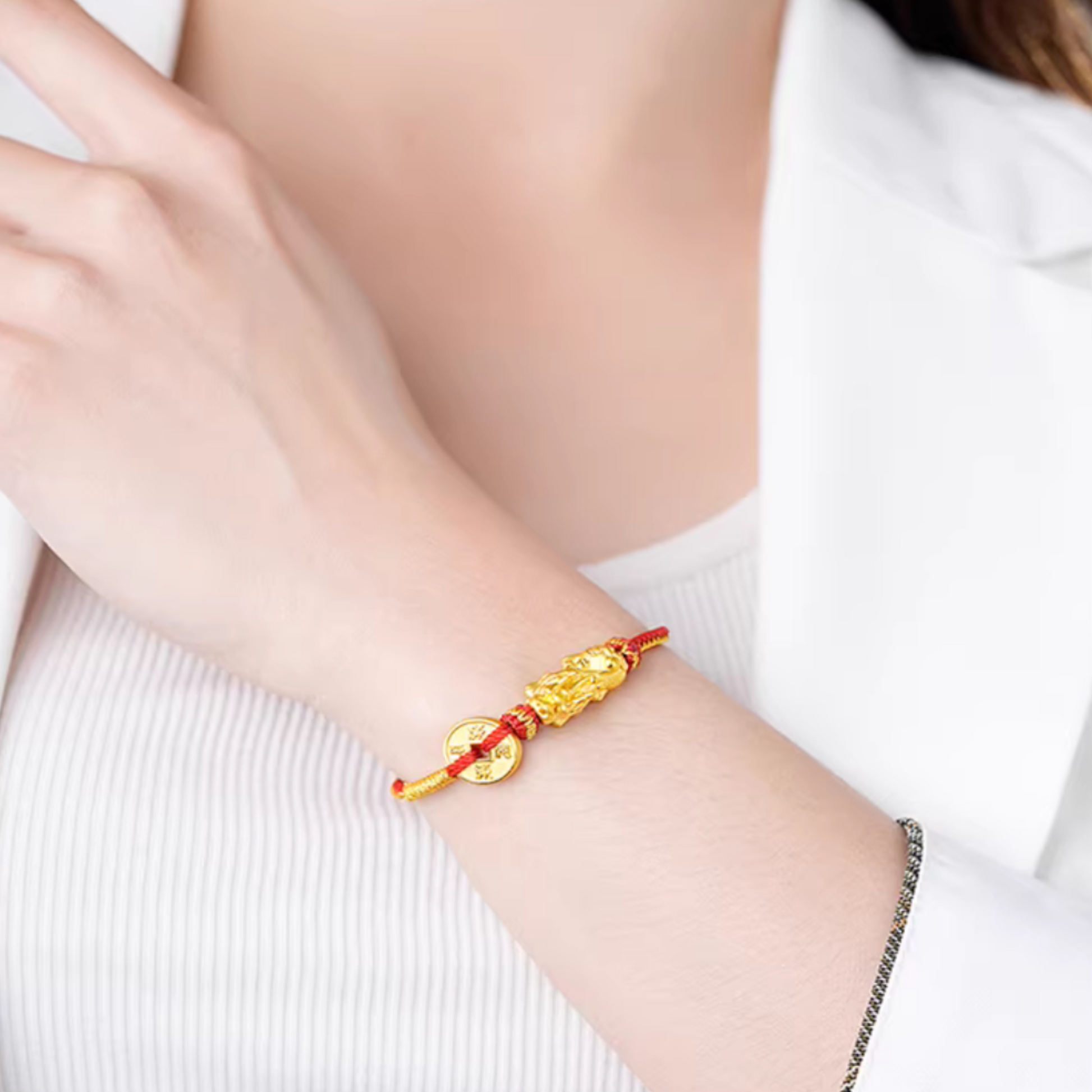 24K 999 Gold Pixiu Charm Coin Woven Rope Braided Bracelet