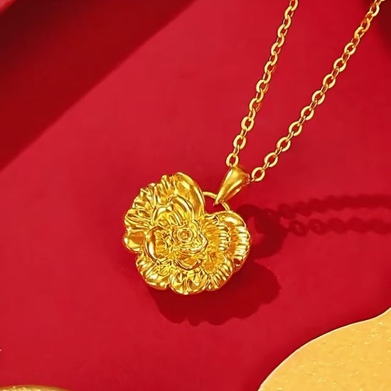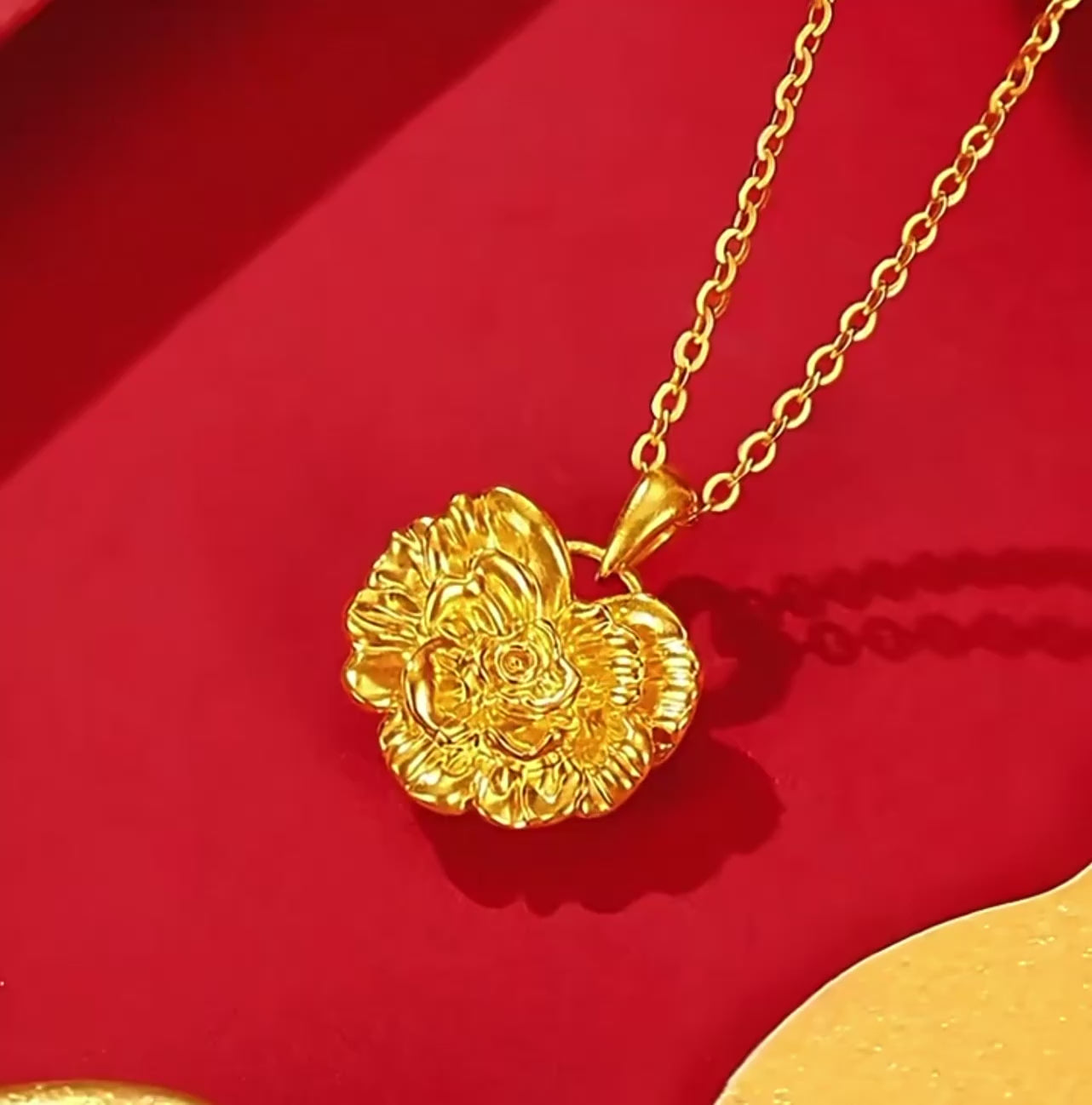 24K 999 Gold Trendy Heart Shape Flower Peony Pendant