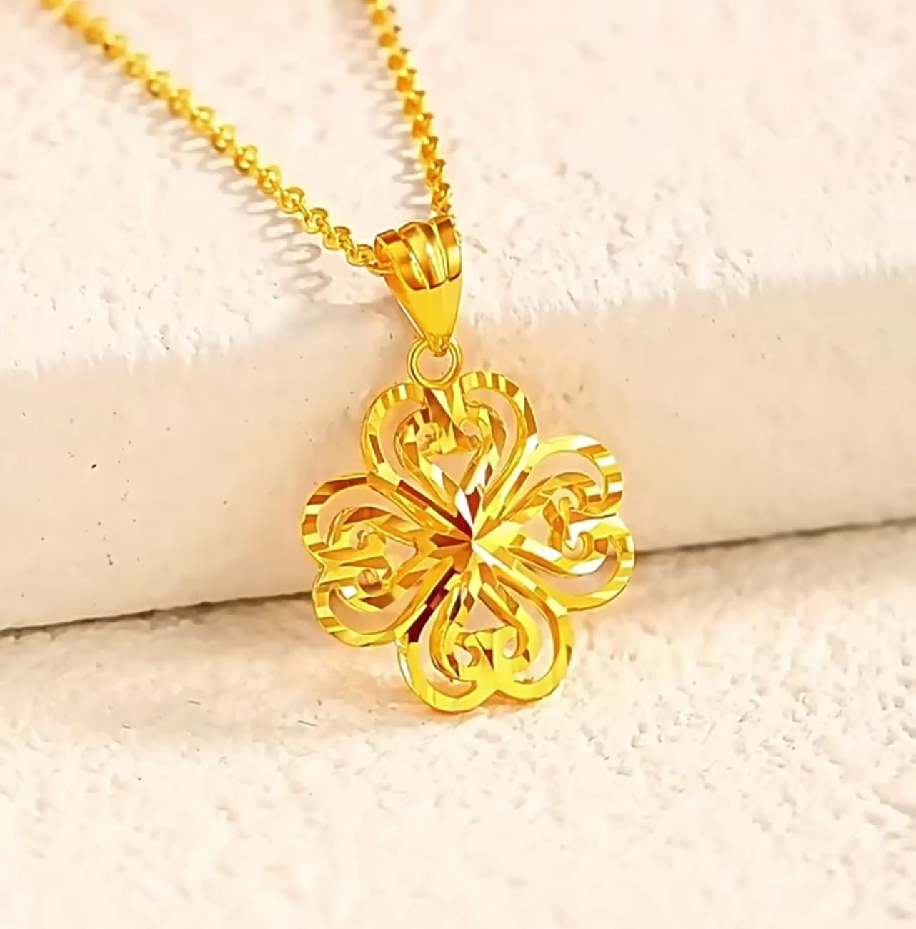 24K 999 Gold Trendy Hollow Four-Leaf Clover Lucky Pendant