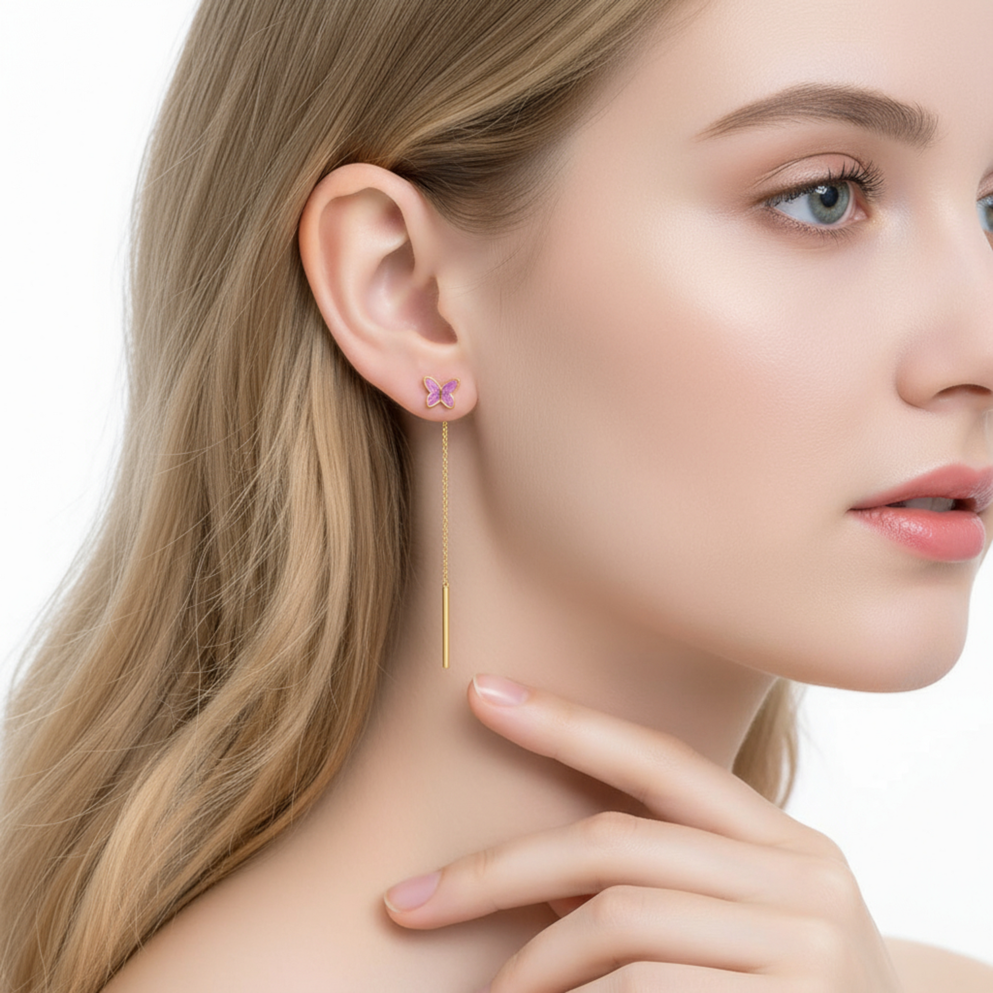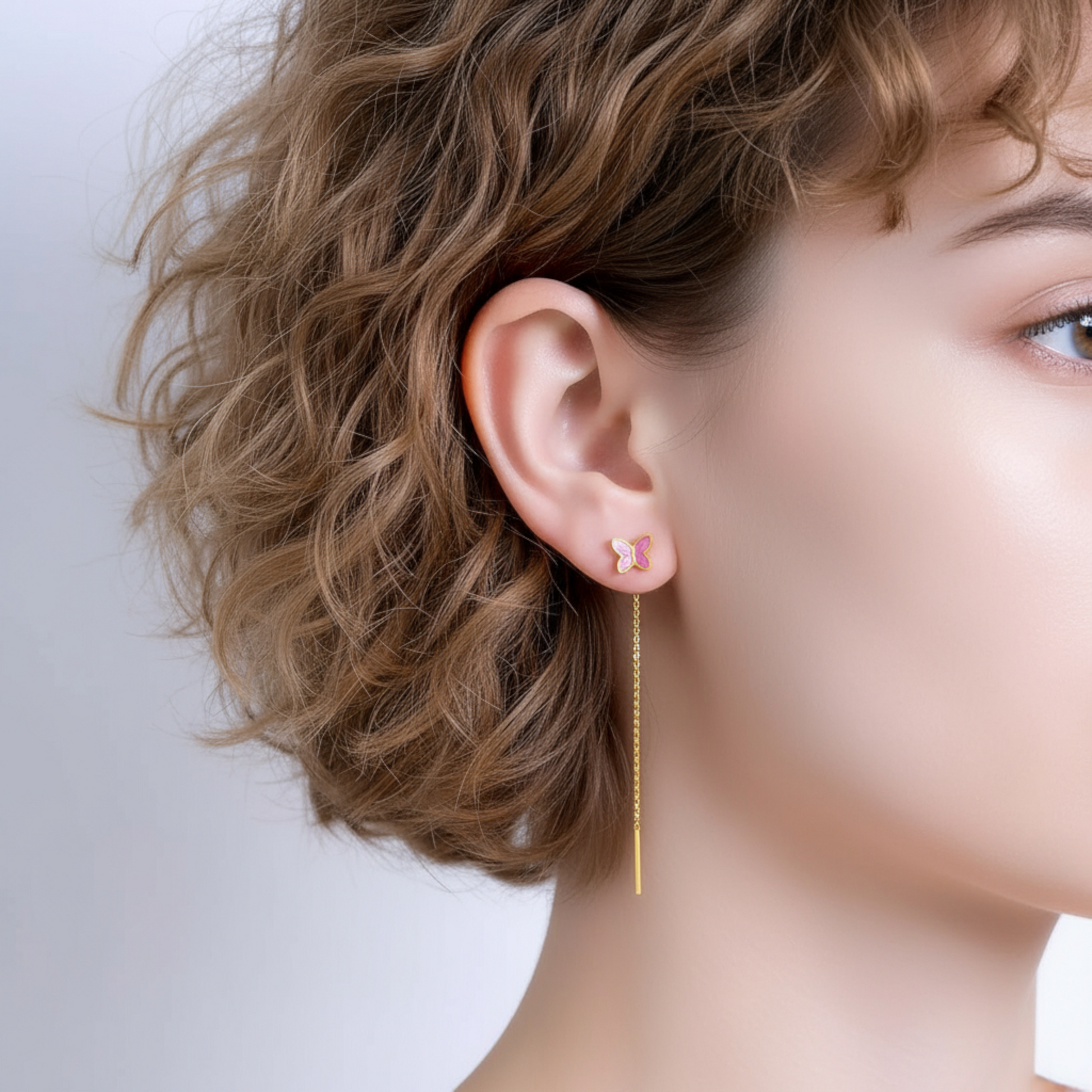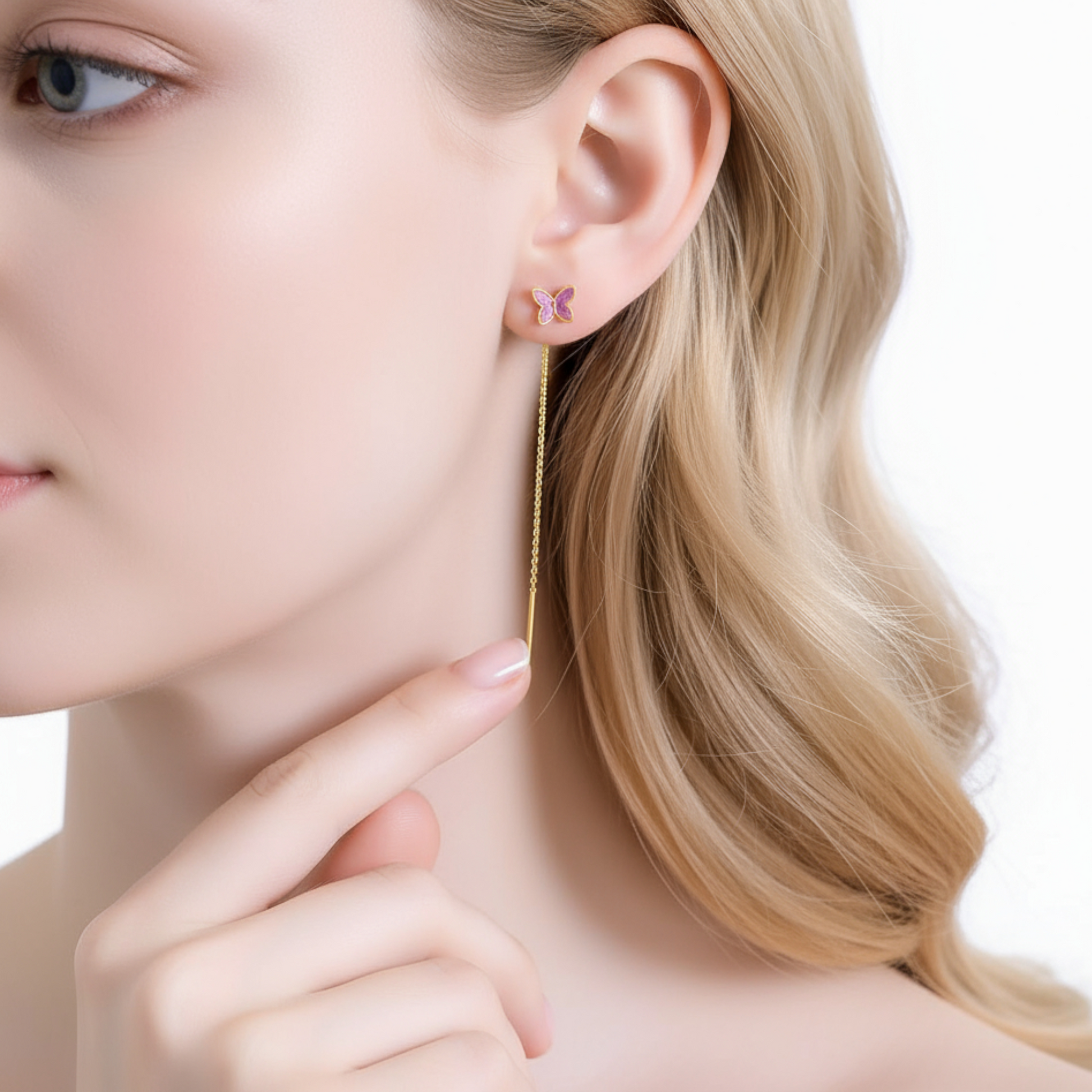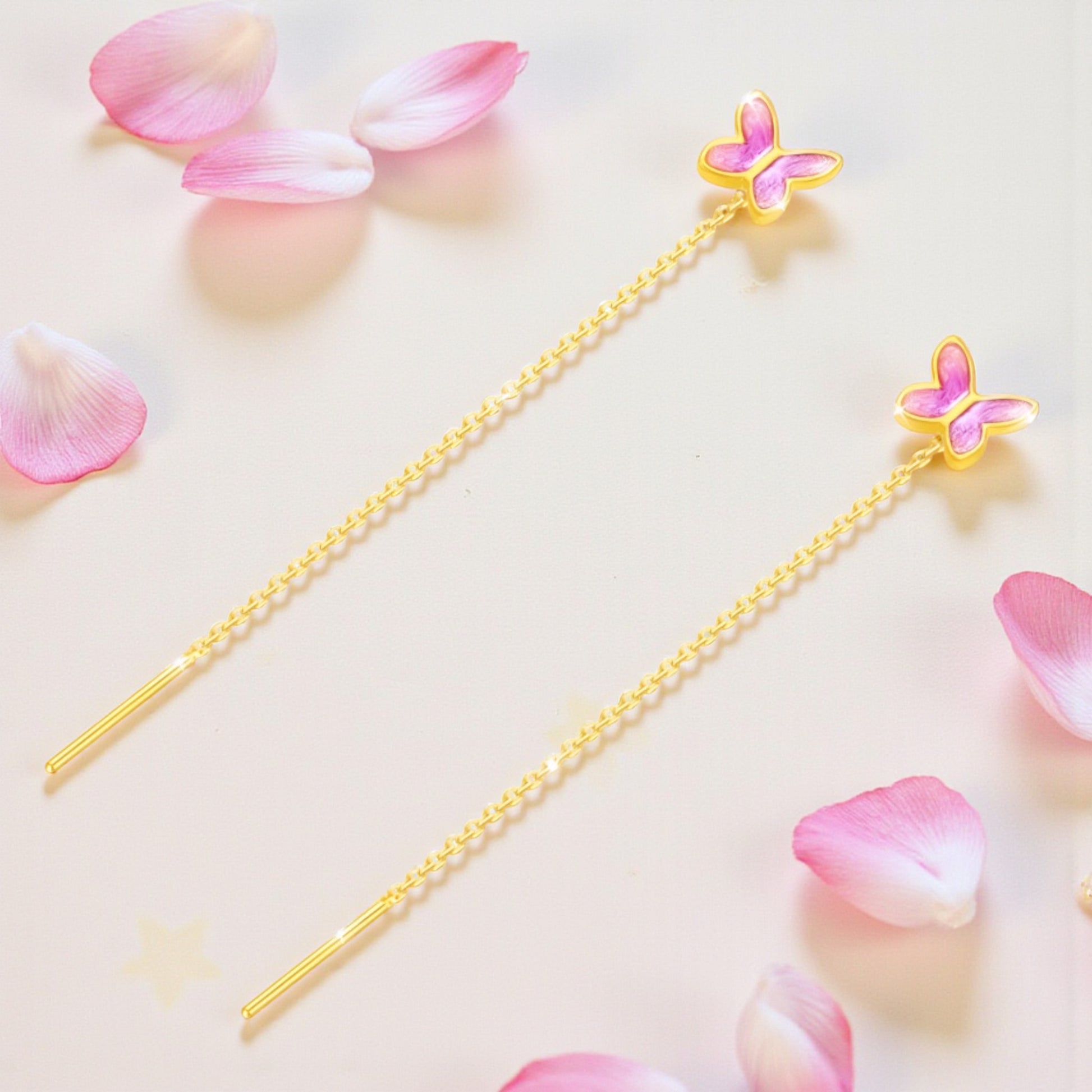 24K 999 Gold Unique and Trendy Enamel Butterfly Threader Tassels Earrings