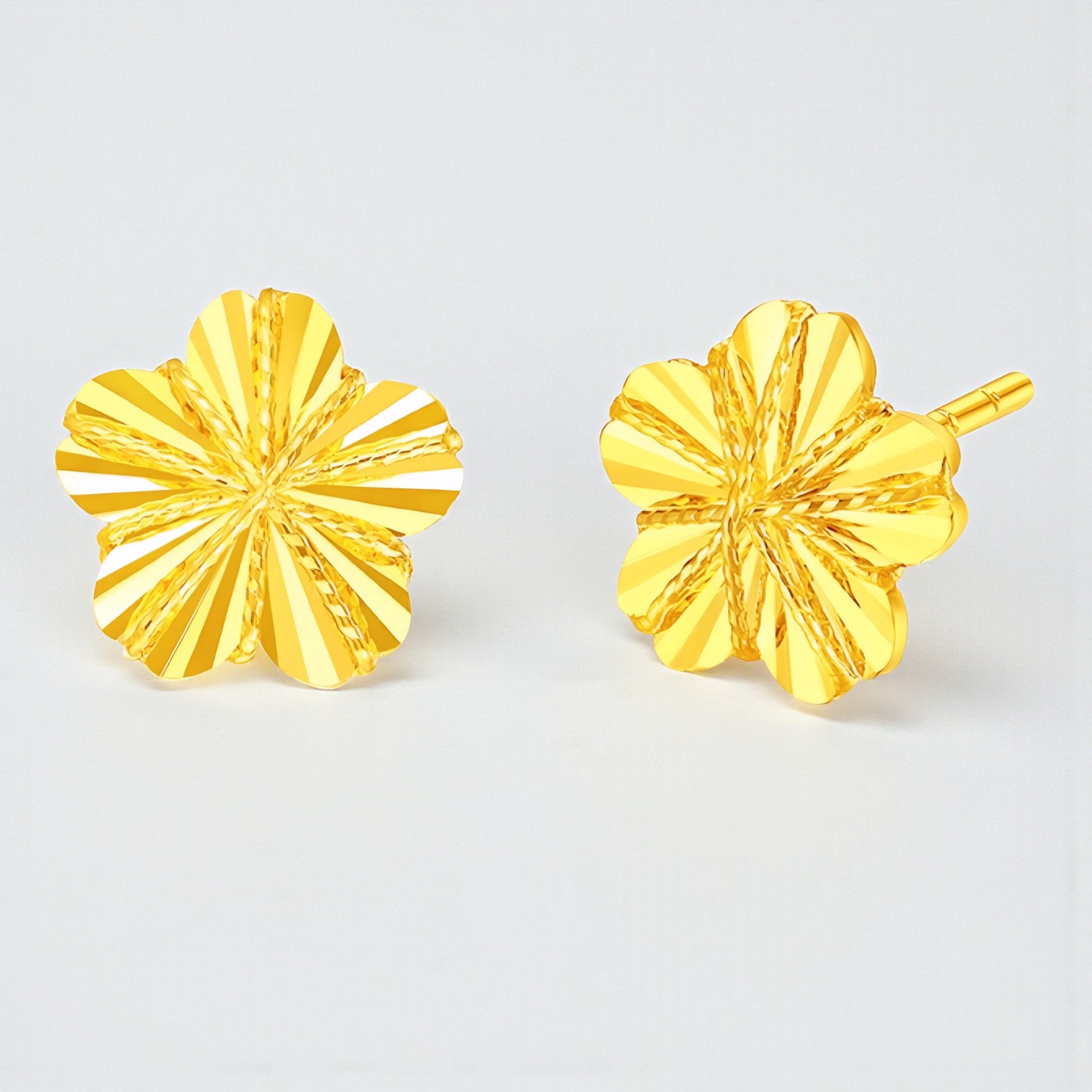 24K 999 Gold Unique and Trendy Shinning Cherry Blossom Flower Stud Earrings