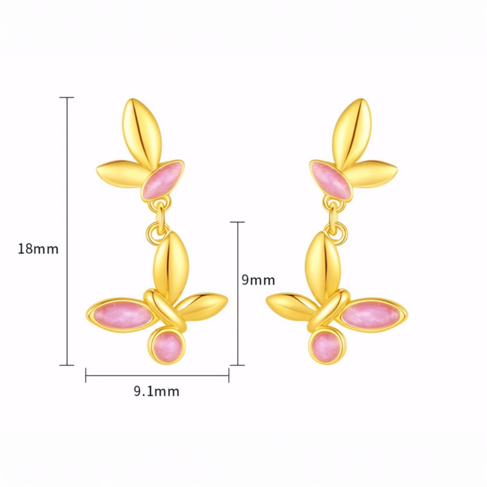 24K 999 Gold Unique and Trendy Pink Enamel Butterfly Stud Earrings