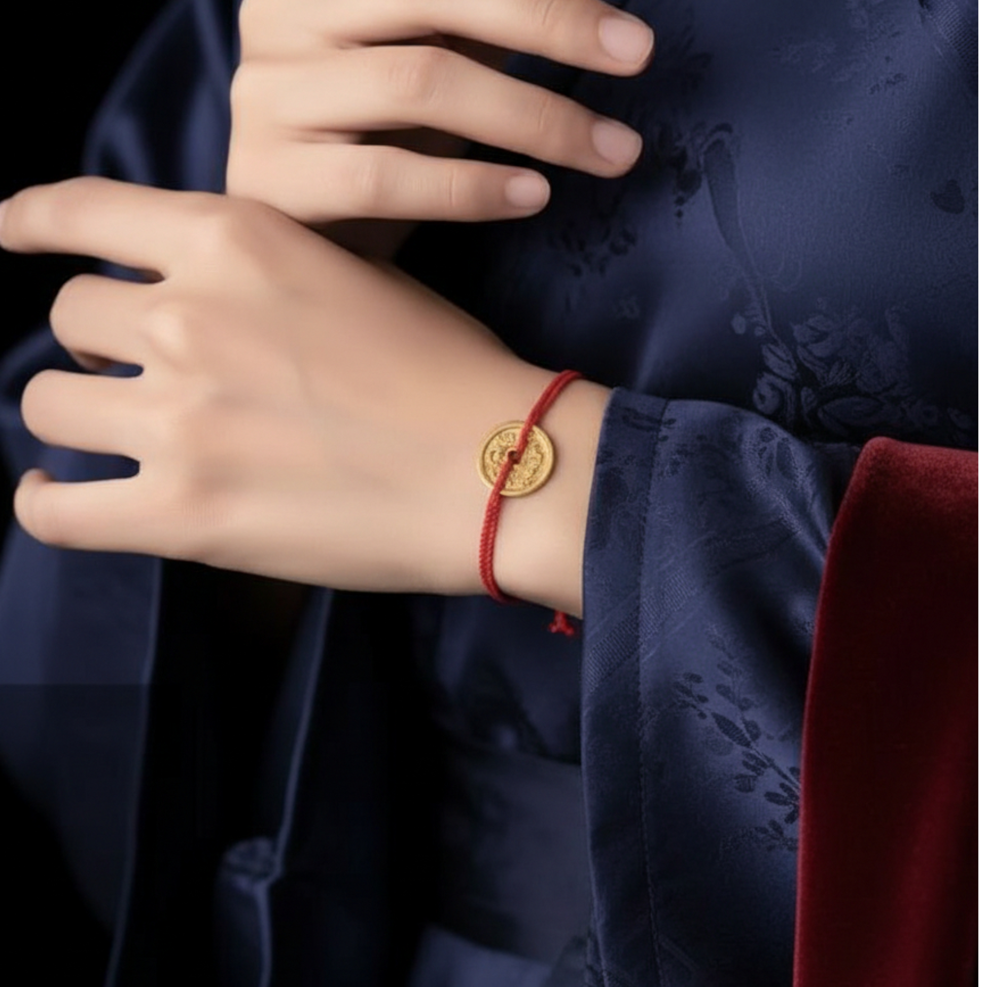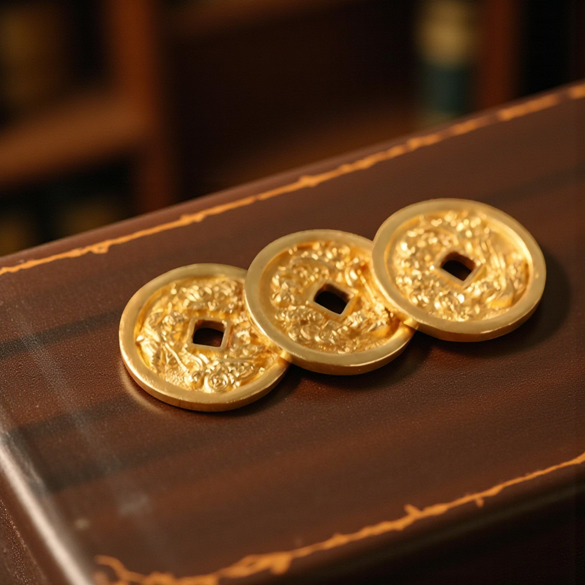 24K 999 Gold Vintage Chinese Hand-Engraved Hammered Coin Pendant