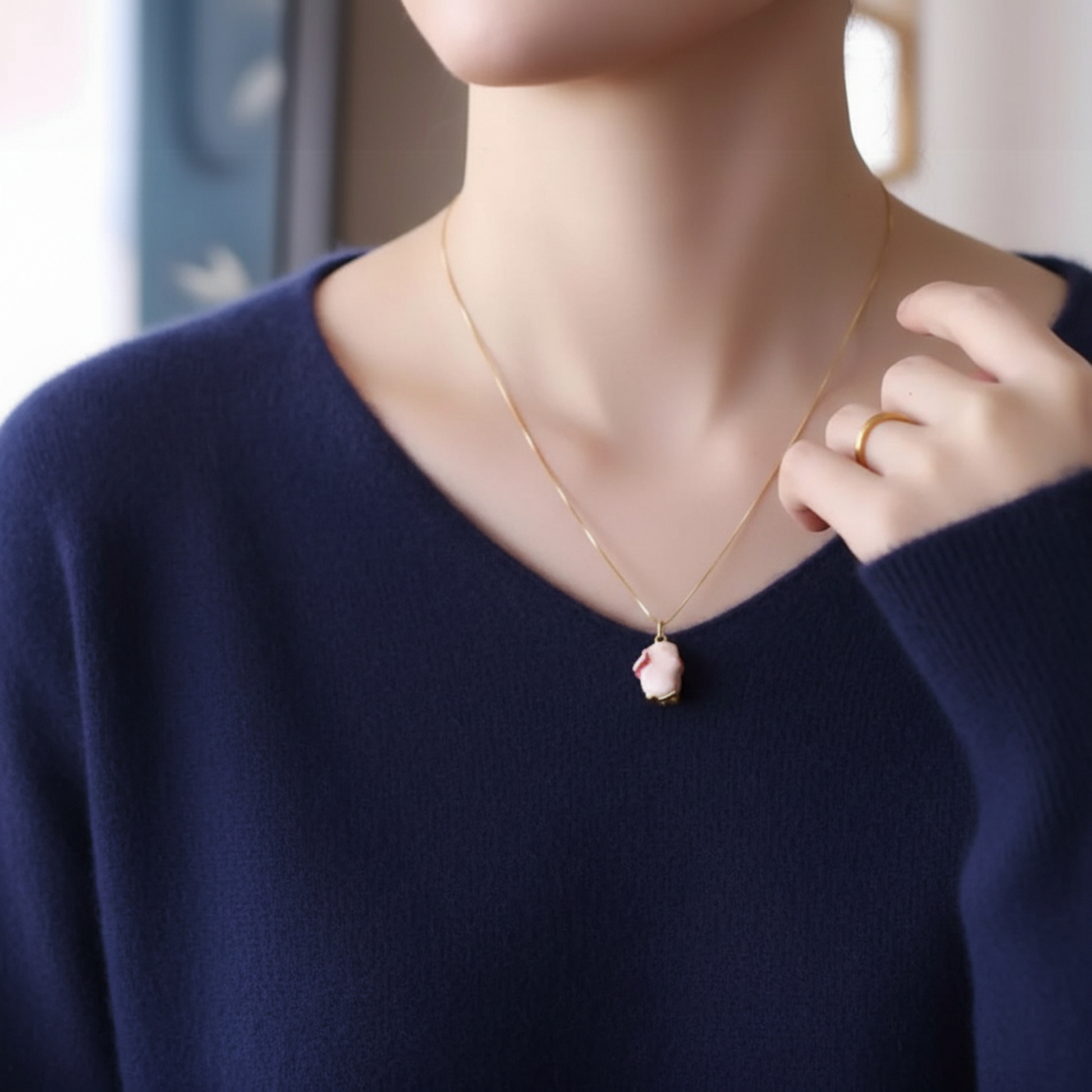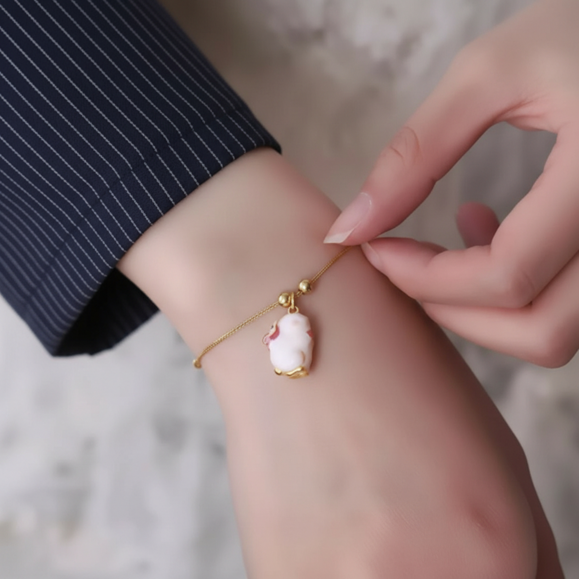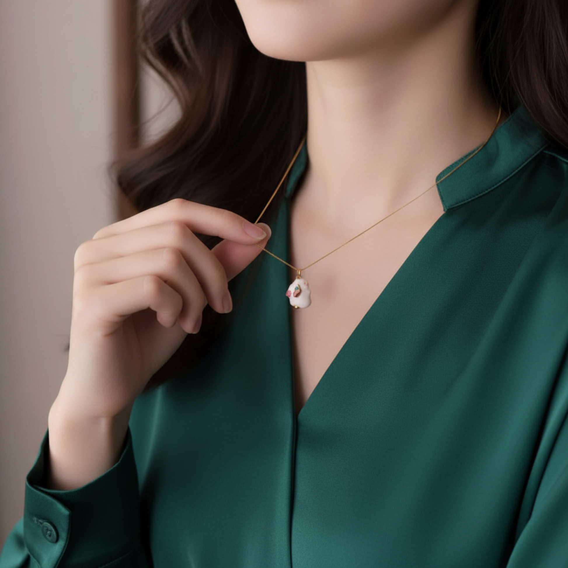 This exquisite pendant combines traditional cloisonné enamel craftsmanship with 24K 999 gold, creating a timeless piece steeped in cultural significance. The delicate pink enamel work showcases meticulous artistry, while the lucky rabbit motif draws from centuries-old symbolism associated with prosperity and good fortune. Perfect as a personal talisman or meaningful gift, this pendant merges aesthetic refinement with purposeful intention, making it an investment in both beauty and positive energy.