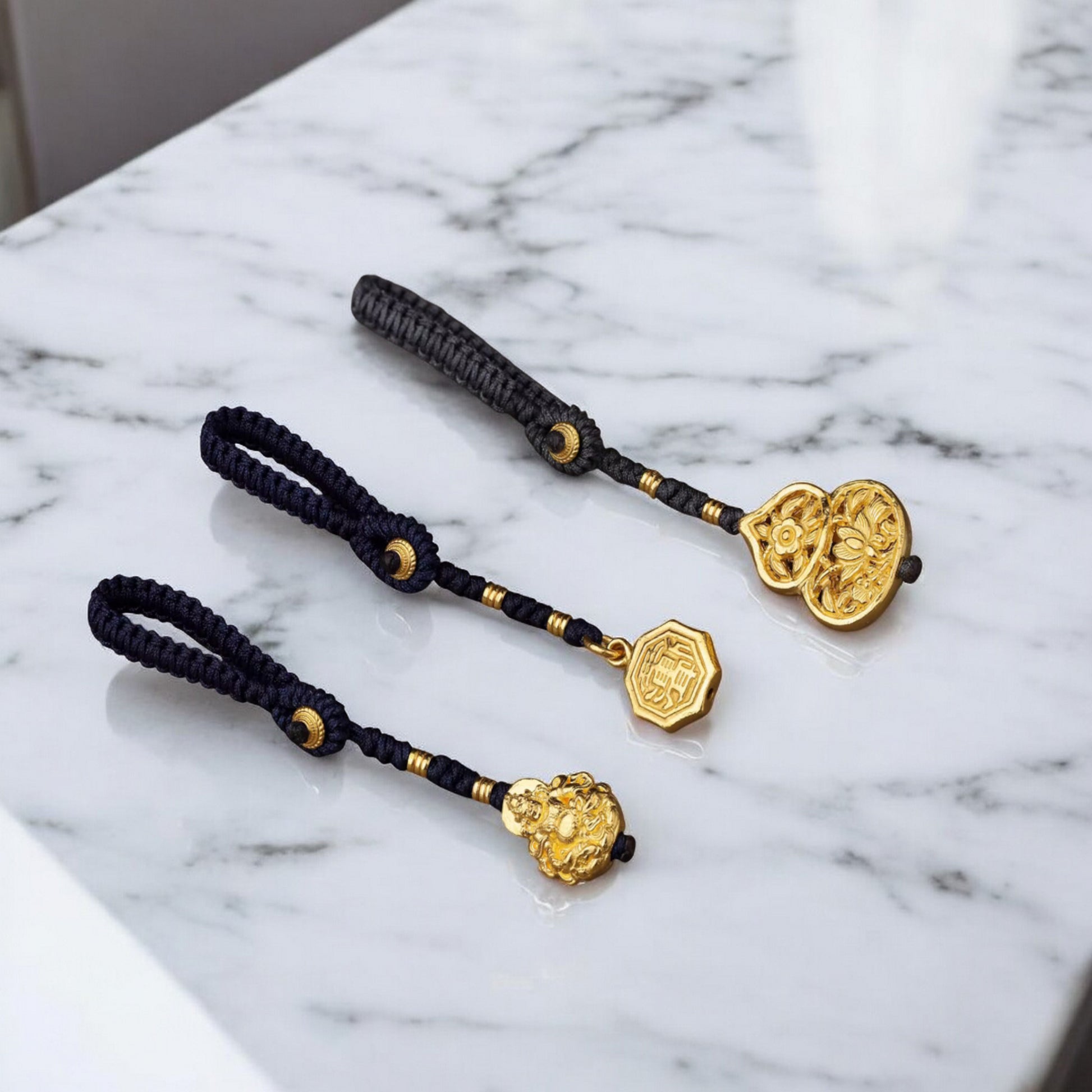 Elevate your everyday carry with this exquisite 24K 999 pure gold pendant, meticulously engraved with meaningful designs. Choose from three distinct styles: the auspicious Wealth Gold symbol for prosperity, the Ziwei Taboo Character for spiritual protection, or the traditional gourd charm for good fortune. Crafted from genuine pure gold, this versatile piece functions as a keychain, mobile phone pendant, or car charm. Its refined craftsmanship and symbolic significance make it an ideal accessory for those seeking both aesthetic elegance and cultural meaning in their daily lives.