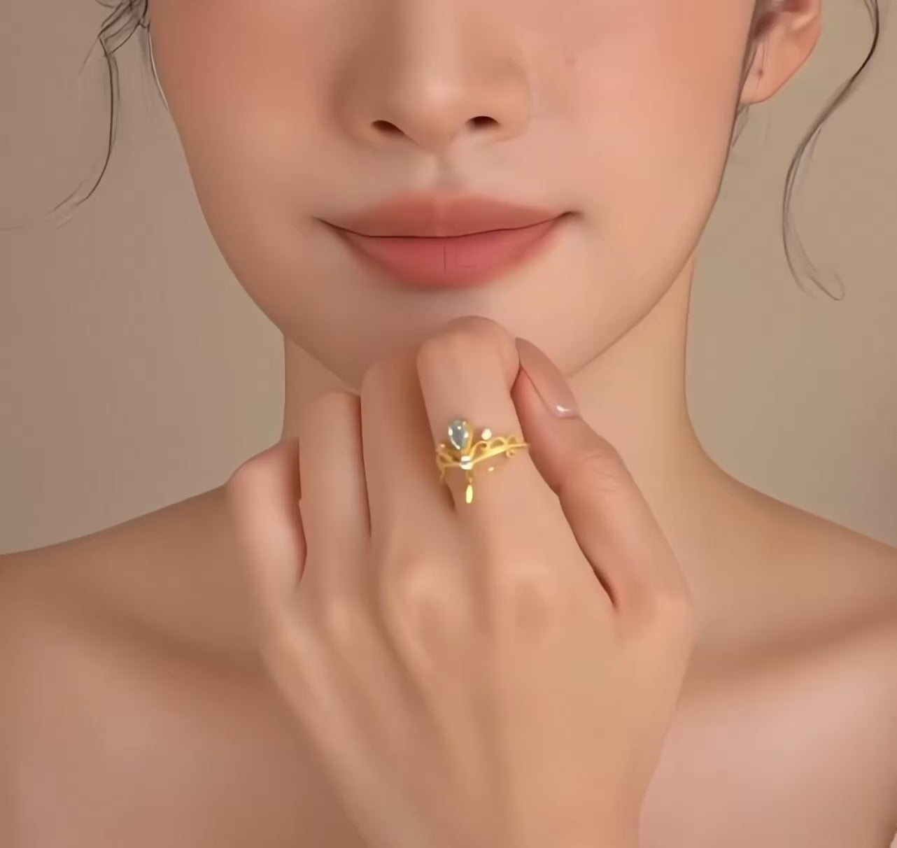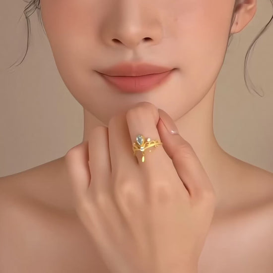 This 24K pure gold ring features an exquisite crown-shaped design accented with blue tears resembling delicate water drops. Ideal for proposals and anniversaries, its striking elegance symbolizes enduring love and commitment. Crafted with meticulous attention to detail, the ring combines luxury with a unique aesthetic, making it a memorable statement piece for special moments.