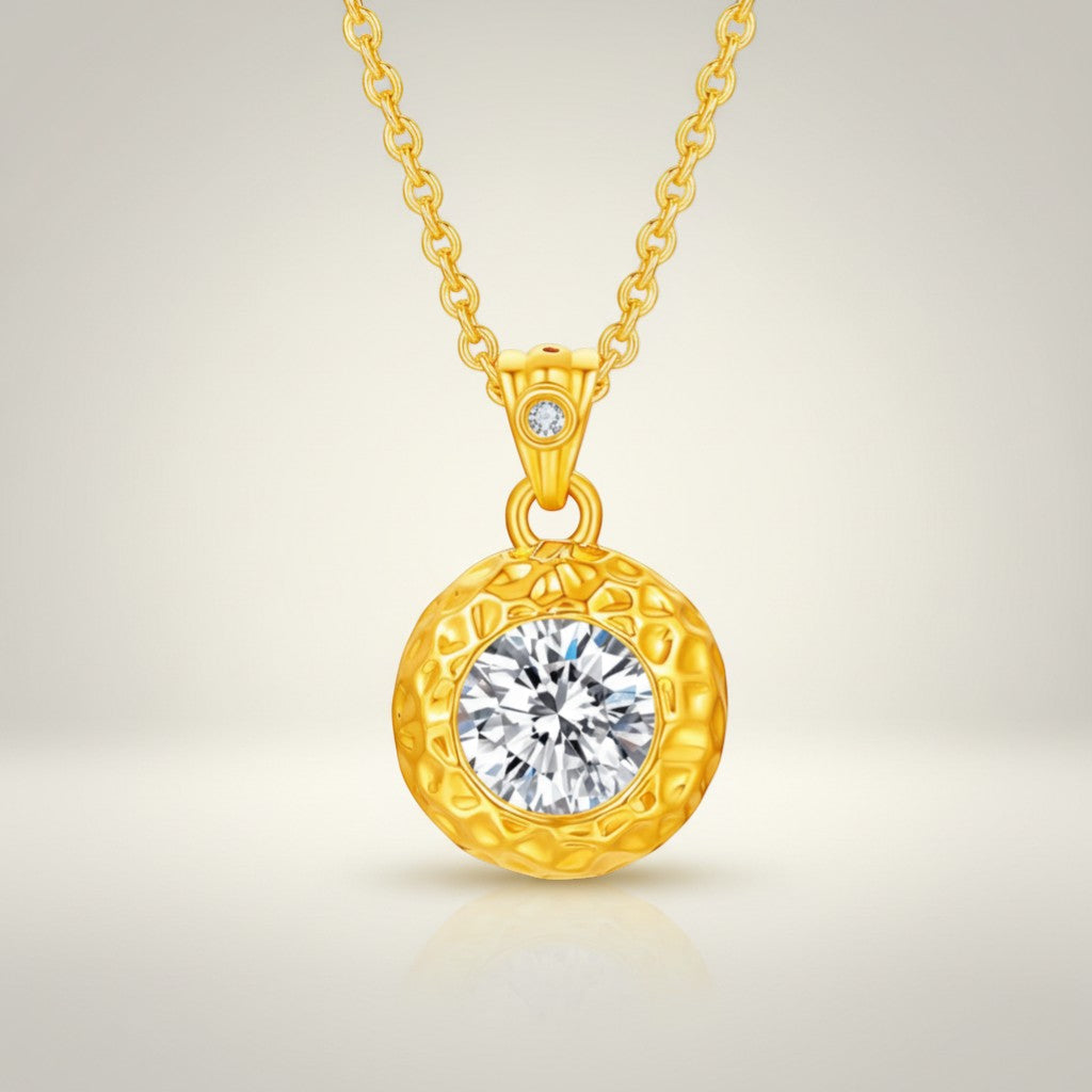 24K 5D Hard Gold Moissanite Minimal Round Pendant