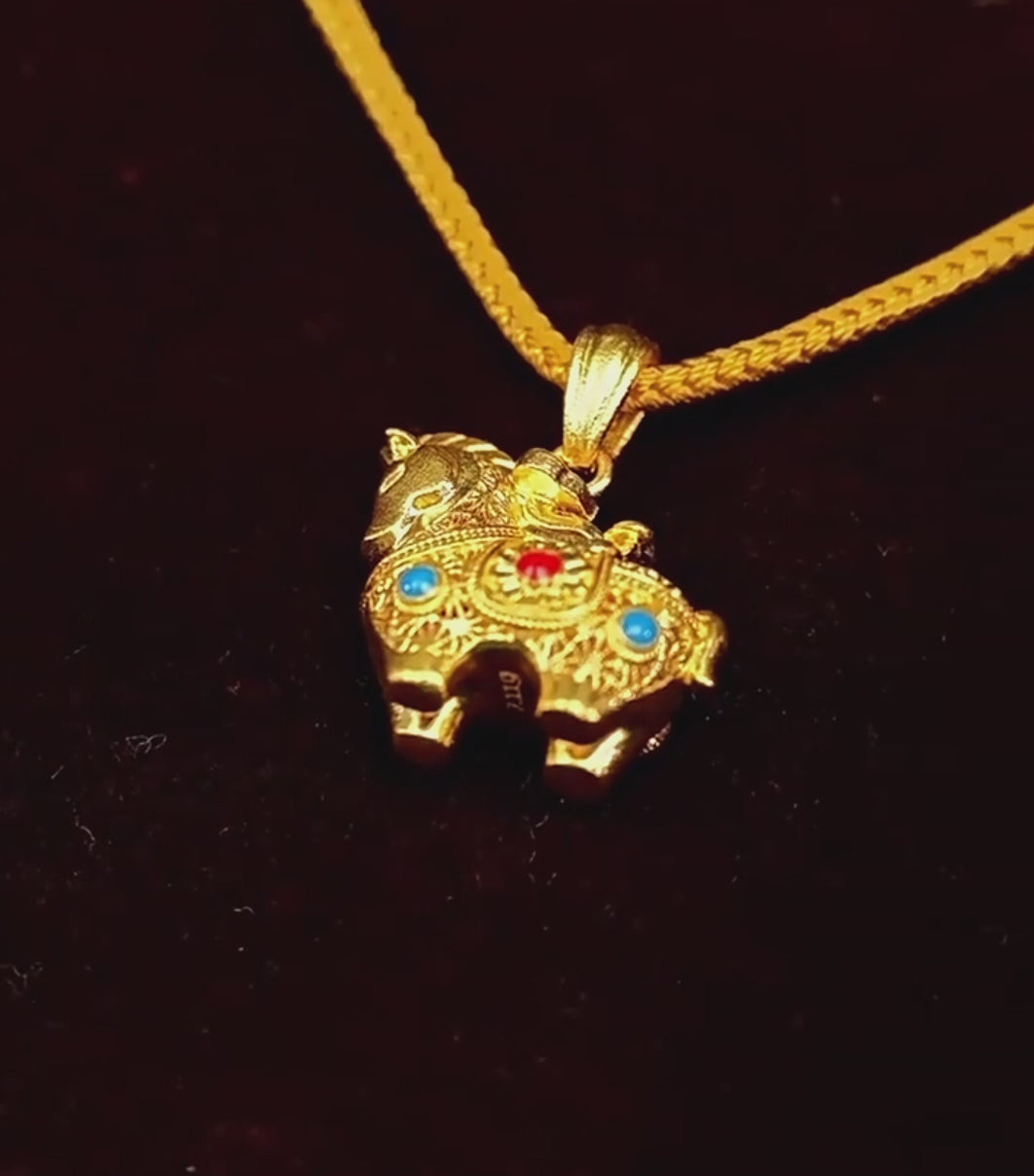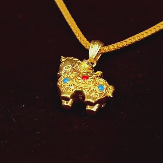 24k 999 Gold Zodiac Enamel Horse with Rope Chain Necklace