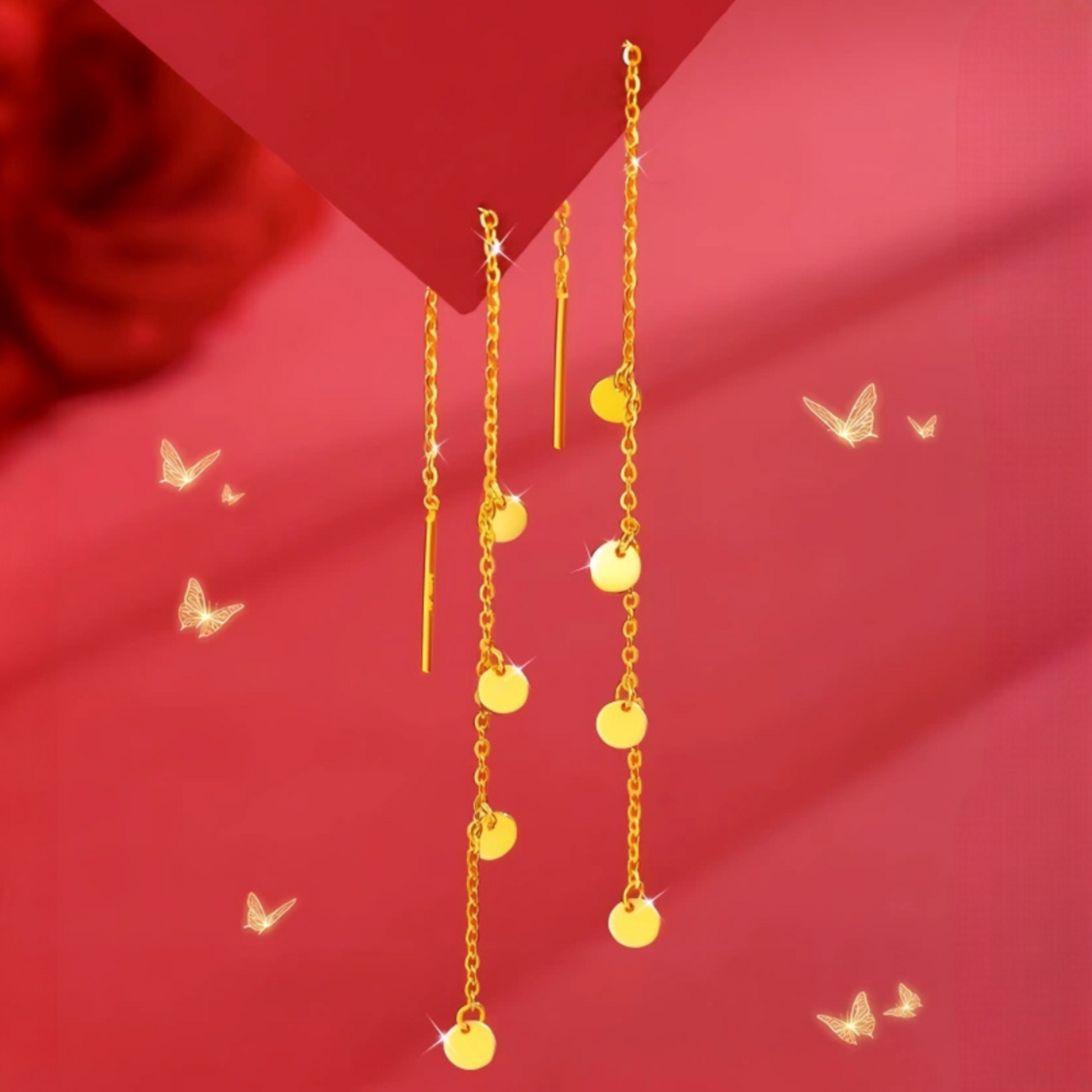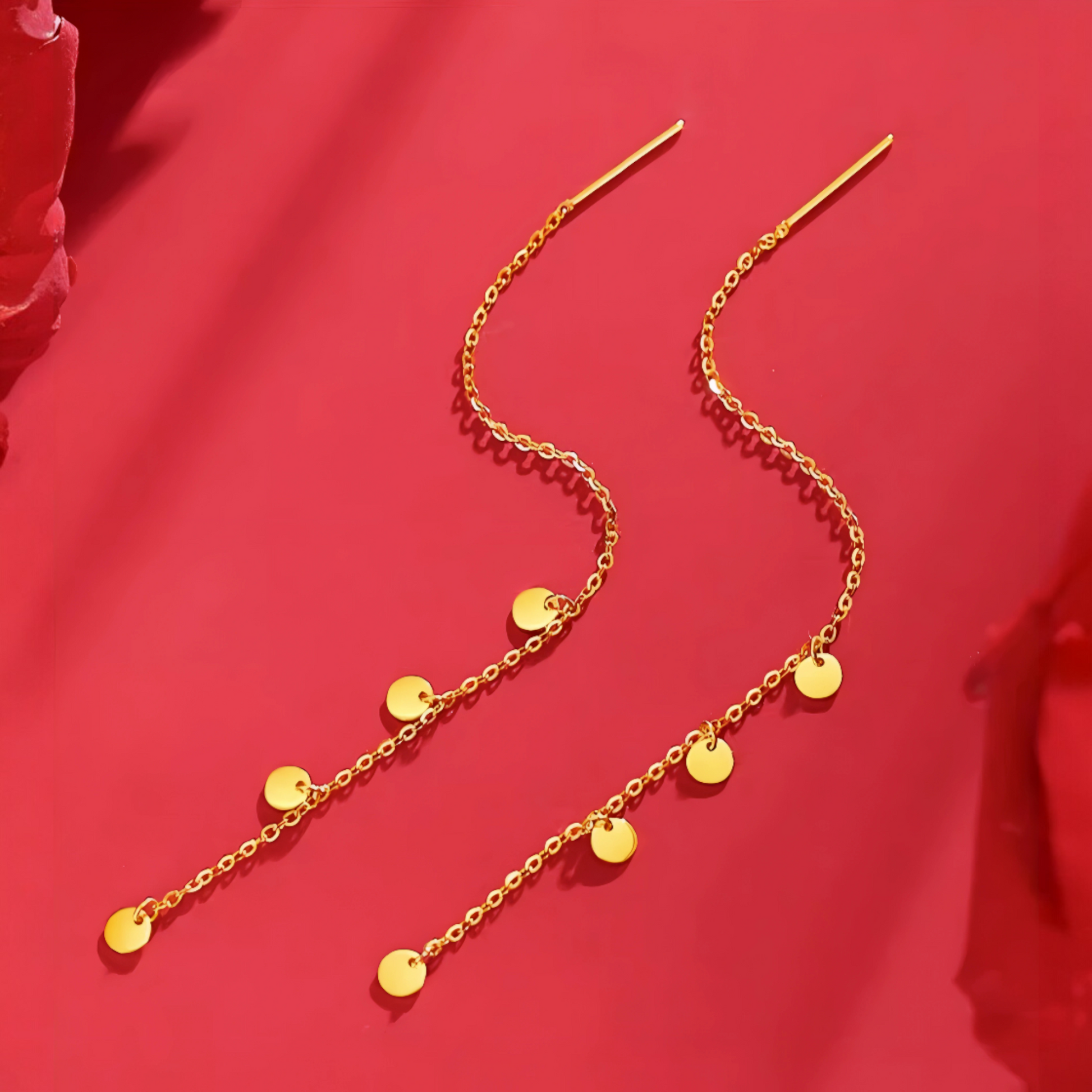 24K Gold Trendy Threader Round Pieces Chain Tassel Earrings