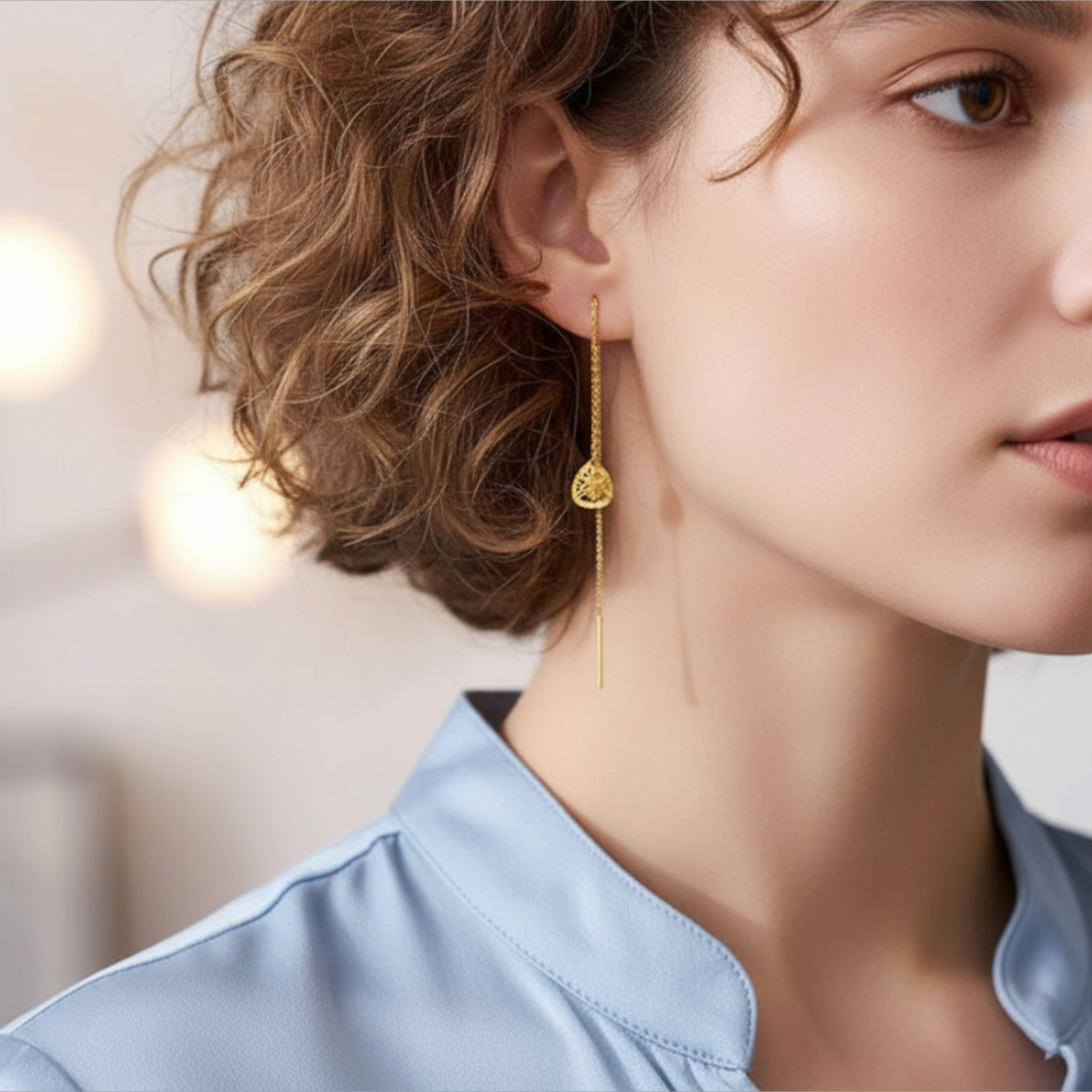 24K Gold Trendy Waterdrop Lucky Charm Threader Earrings