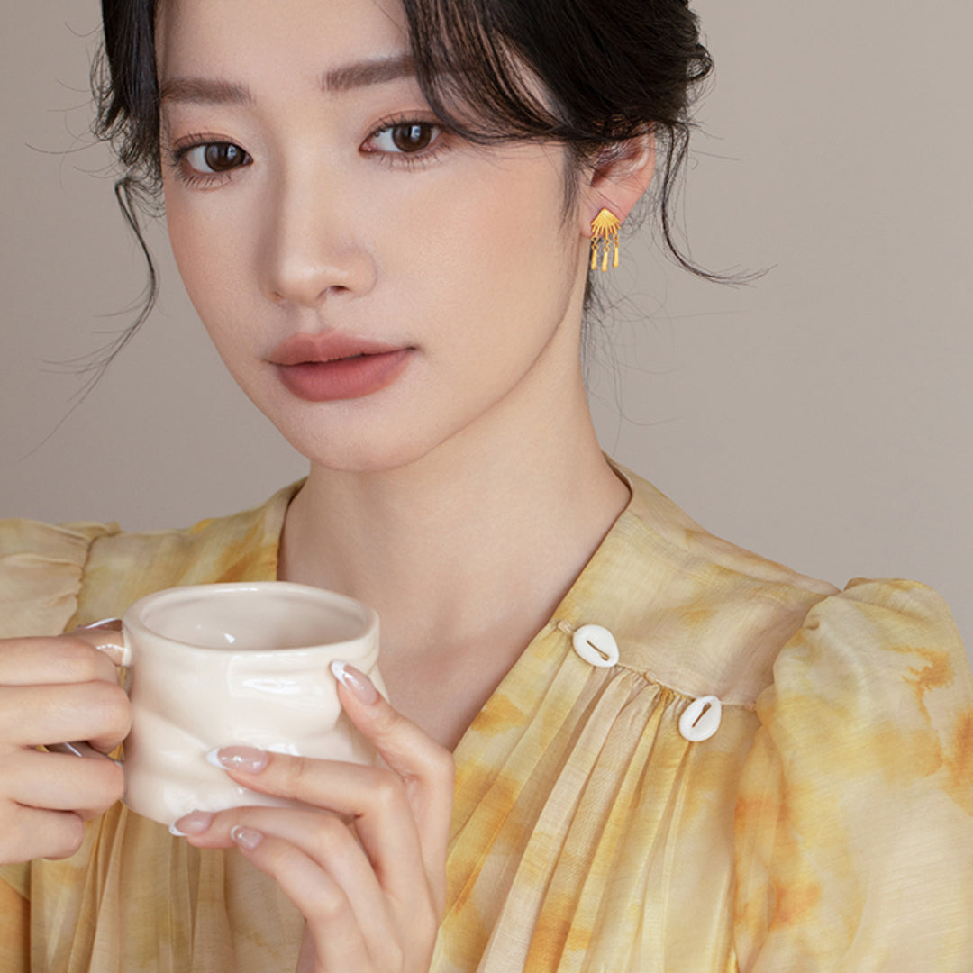 24K Little Jellyfish Gold Earrings Pure Gold Summer Ocean Style Stud Earrings