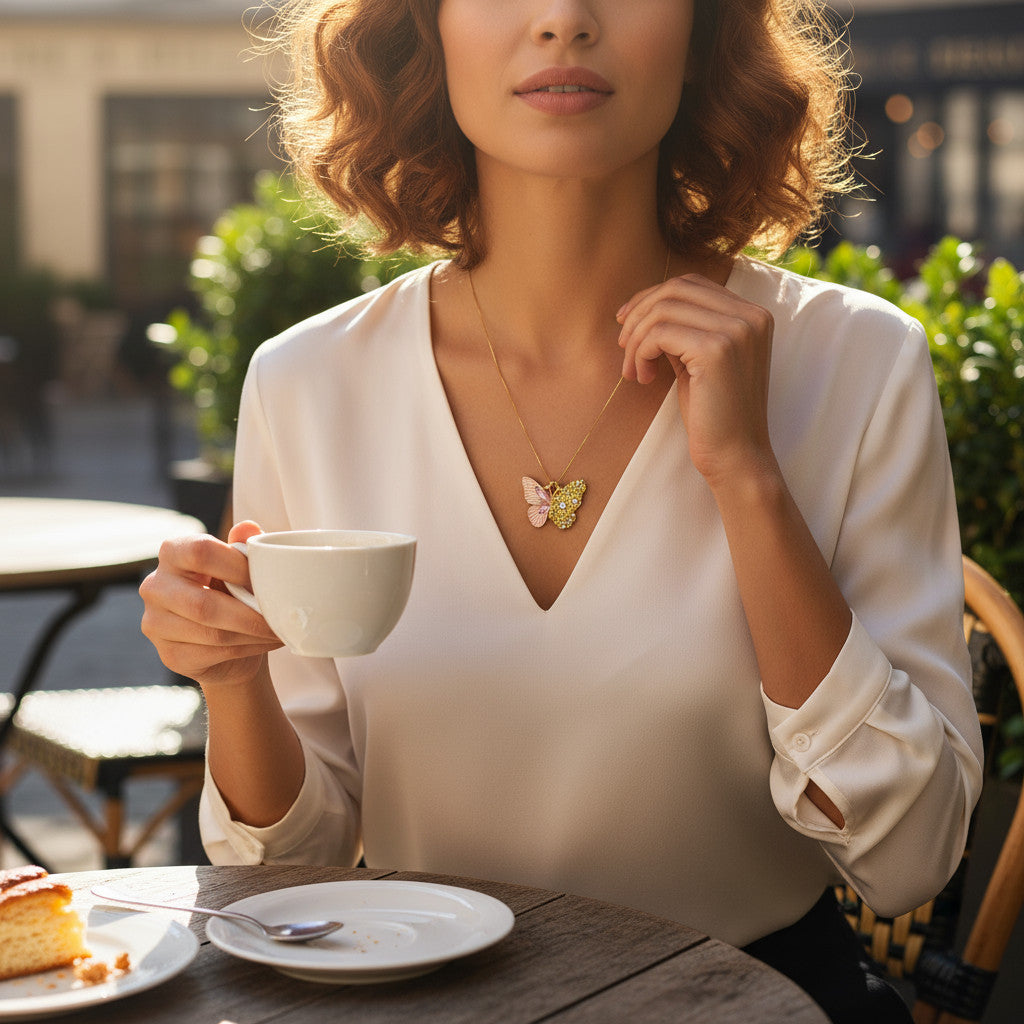 24K Pure 999 Cloisonné Enamel Colorful Butterfly D.I.Y Charm Pendant