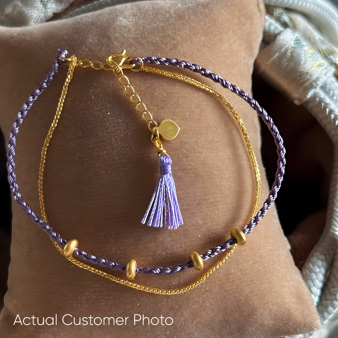 24k Pure 999 Gold Braided red Rope Gold Chain Double Dual Layer Bracelet
