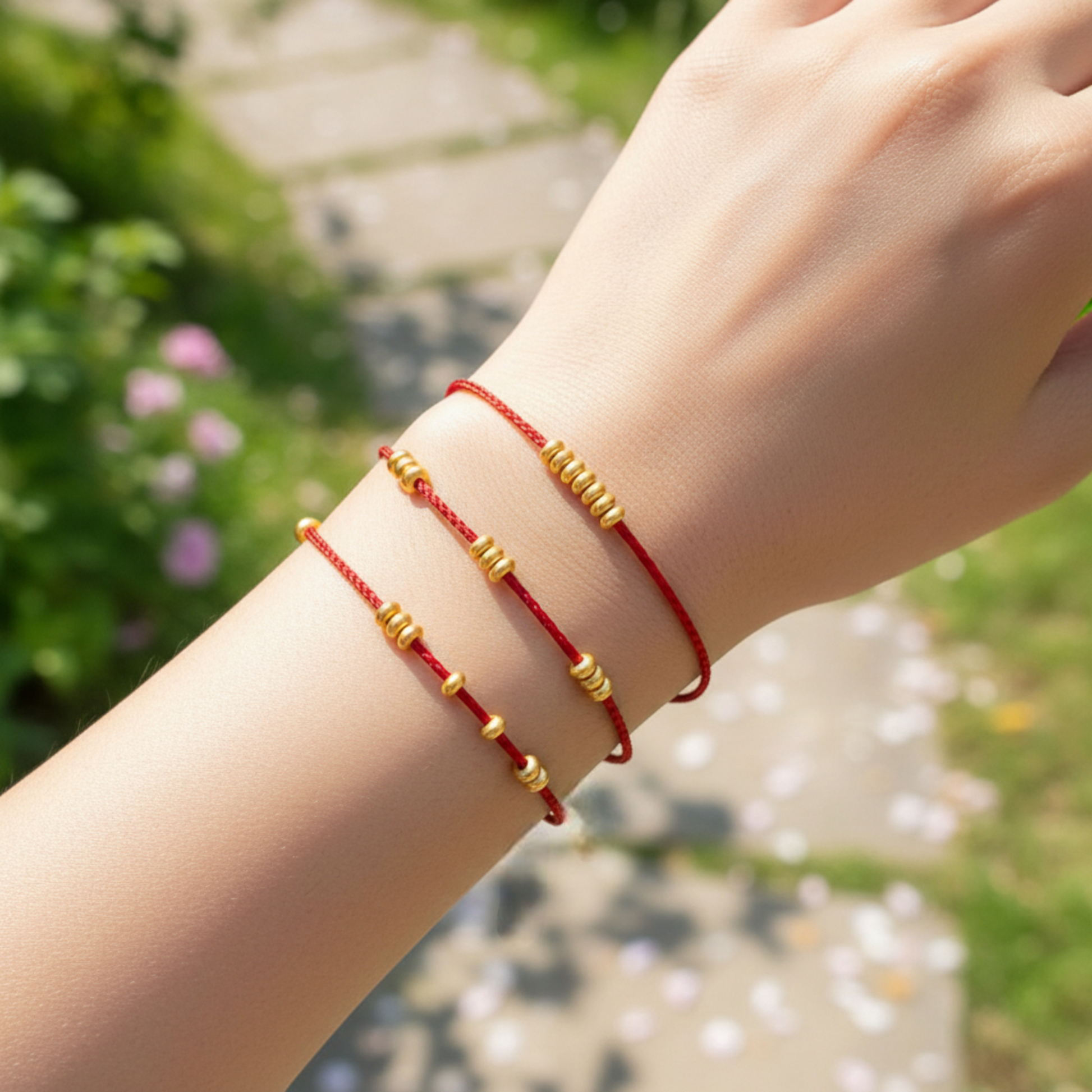 24k Pure 999 Gold Lucky Beads with Red Rope Bracelet