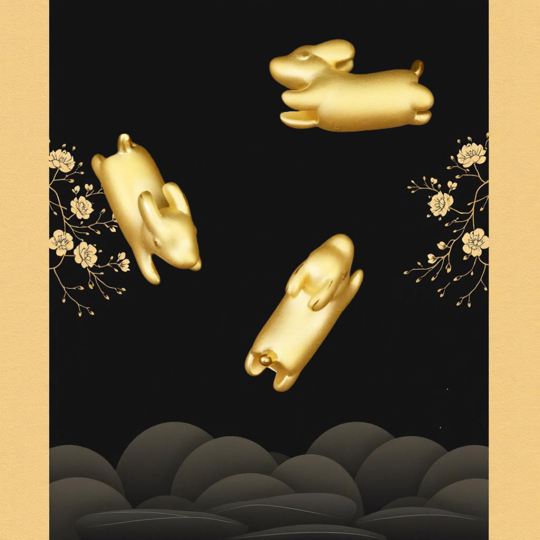 24K Pure 999 Gold Lucky dachshund Dog D.I.Y Charm Pendant