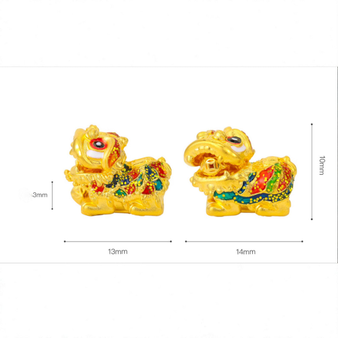 24K Pure 999 Cloisonné Enamel Lion Dance Gold D.I.Y Charm Pendant Bringing Wealth Good Fortune