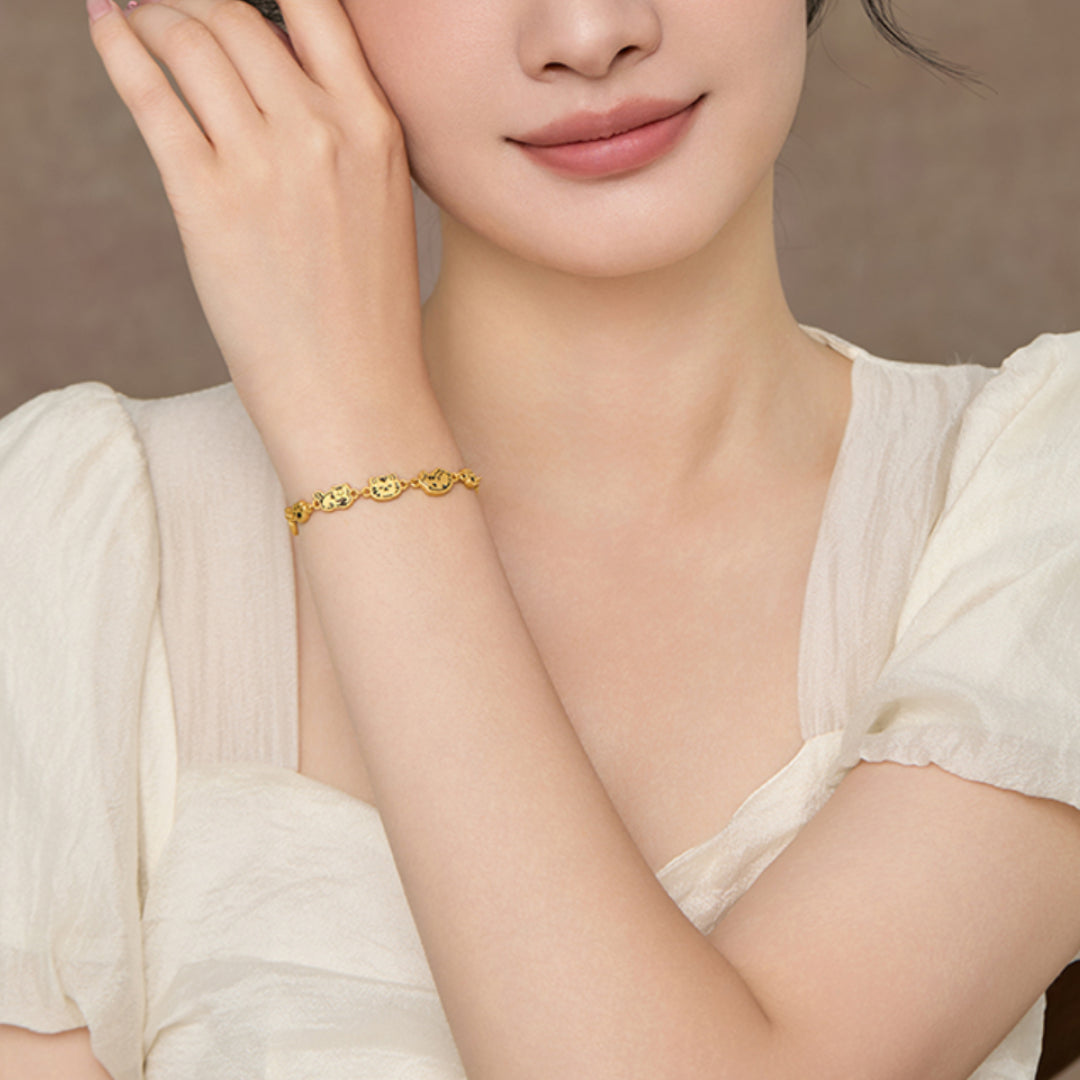 24K Pure Gold 3D Hard Gold Cute Enamel Cat Kitty Bracelet Perfect Gift