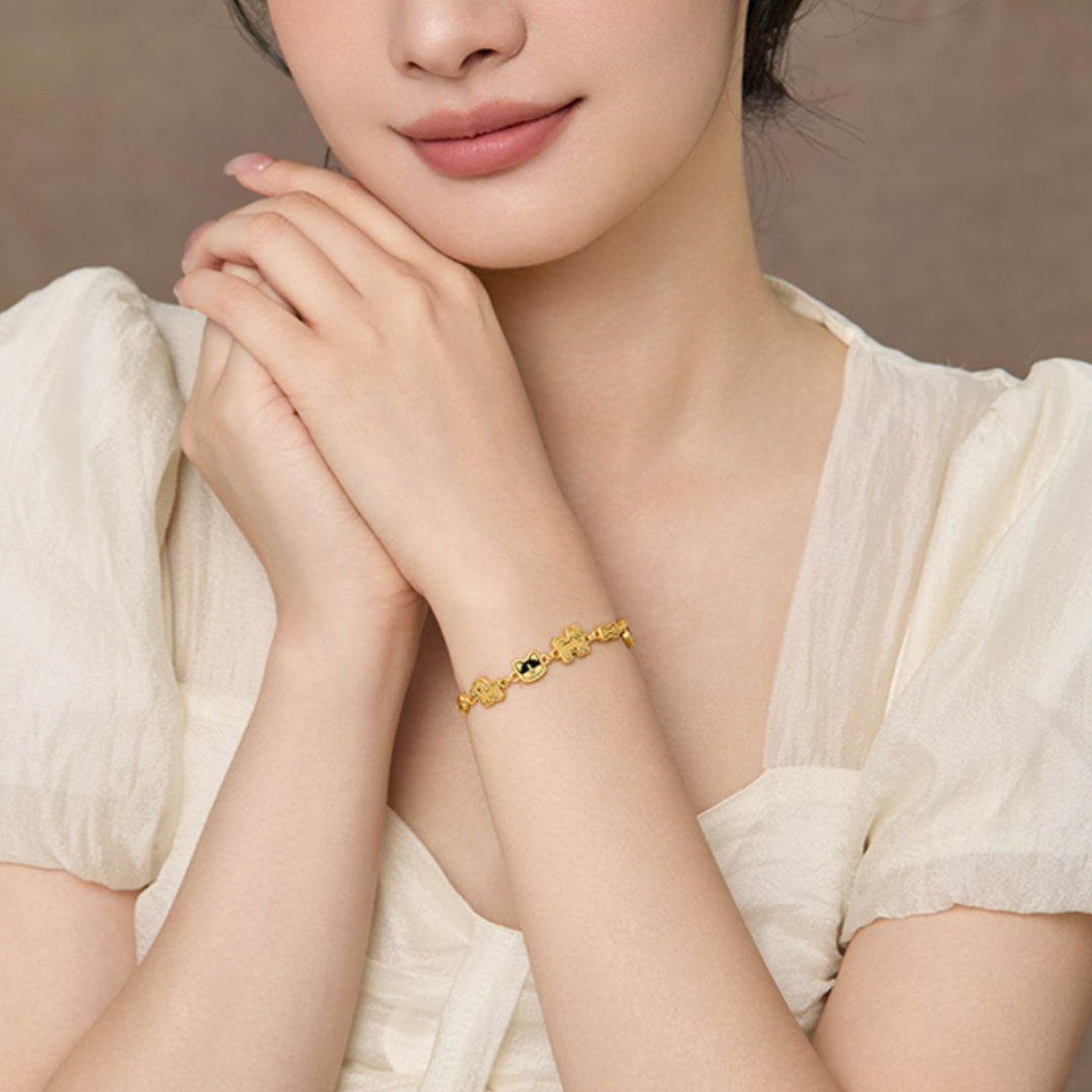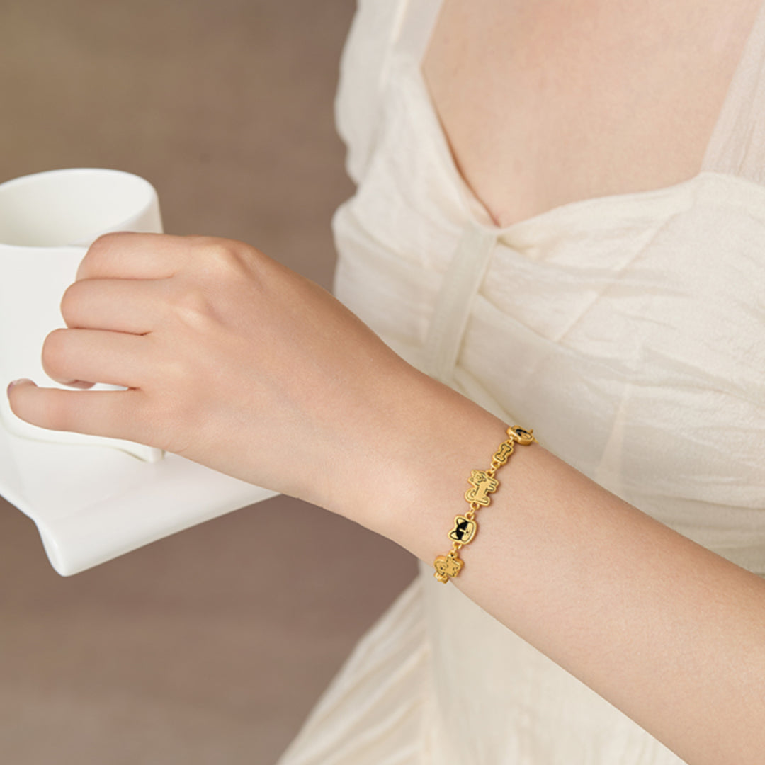 24K Pure Gold 3D Hard Gold Cute Enamel Dog Bracelet Perfect Gift