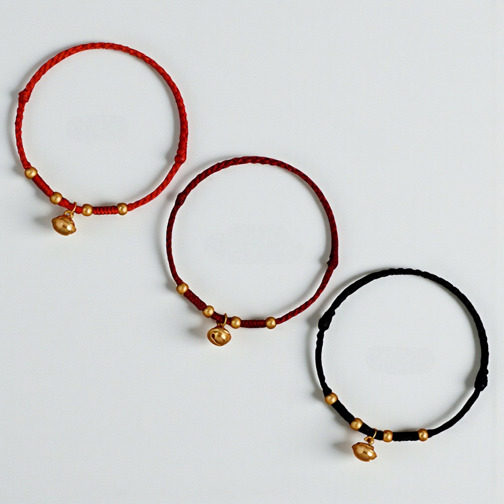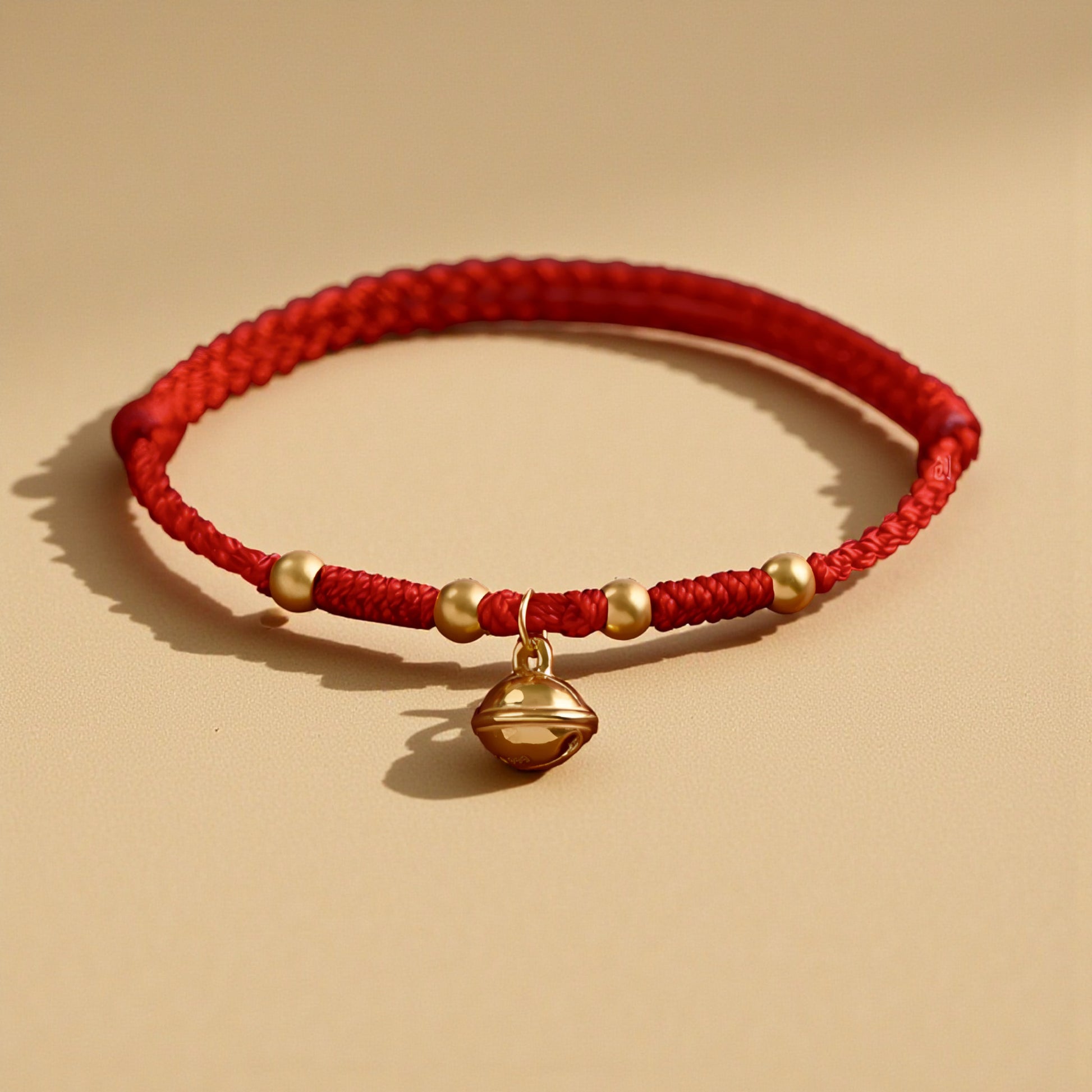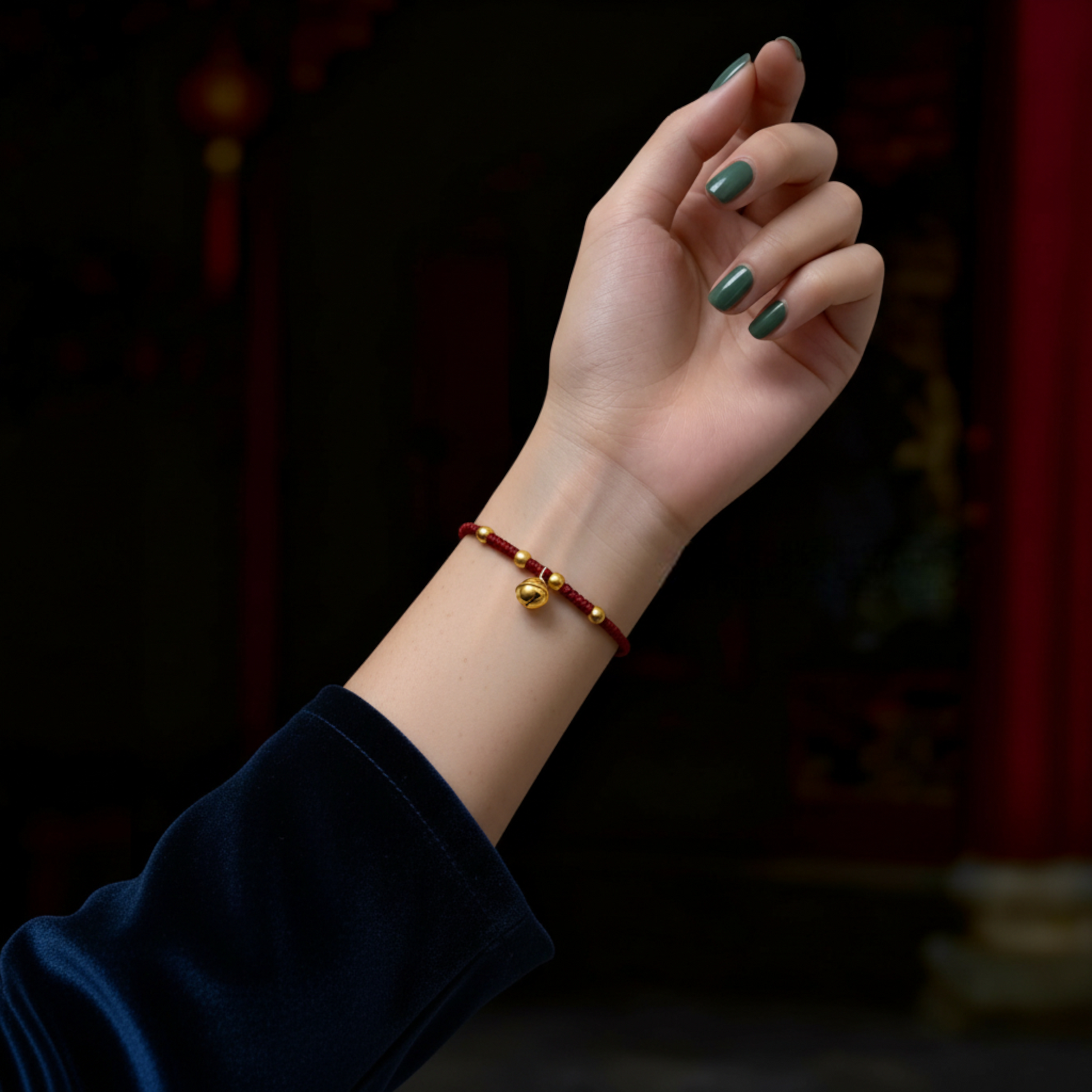 Crafted from authentic 24k pure gold (999 fineness), this braided red rope bracelet features delicate gold beads and a charming bell accent. Designed as a matching couple's piece, it symbolizes good fortune and connection. The adjustable braided construction ensures comfortable wear for both men and women, making it an ideal gift for meaningful relationships or personal prosperity. A timeless accessory that blends traditional symbolism with refined craftsmanship.