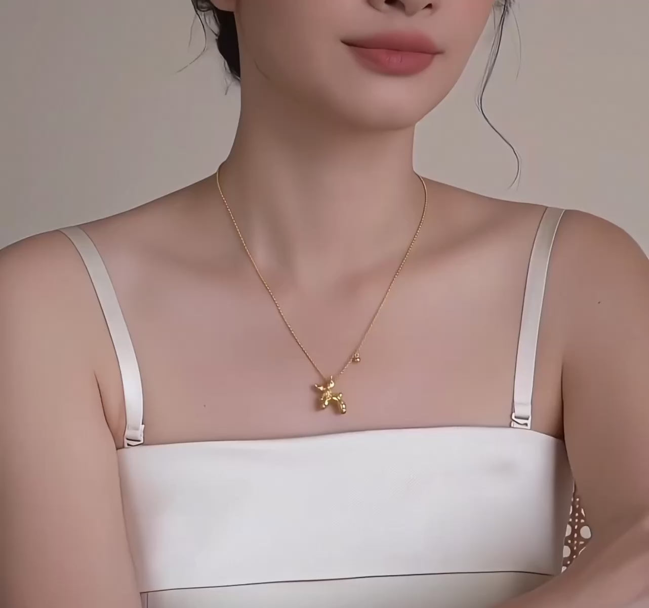 Crafted from 24K pure gold, this Balloon Puppy Dog pendant combines playful design with luxury. Featuring a dazzling moissanite gemstone, it offers exceptional brilliance and durability while elevating your style with a unique, sophisticated charm perfect for collectors and connoisseurs of fine jewelry.
