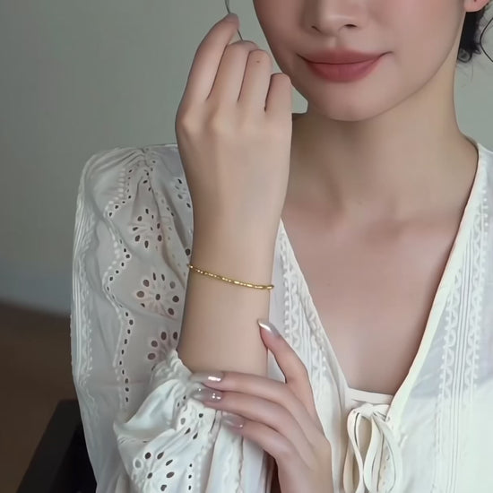 This 24k Pure Gold Beads Minimal Style Bracelet offers refined elegance through its simplicity. Crafted with genuine 24-karat gold beads, it provides lasting shine and hypoallergenic wear. Its minimalist design suits both everyday use and sophisticated occasions, adding subtle luxury without overpowering your look. Durable and timeless, this bracelet complements various styles while maintaining expert craftsmanship.