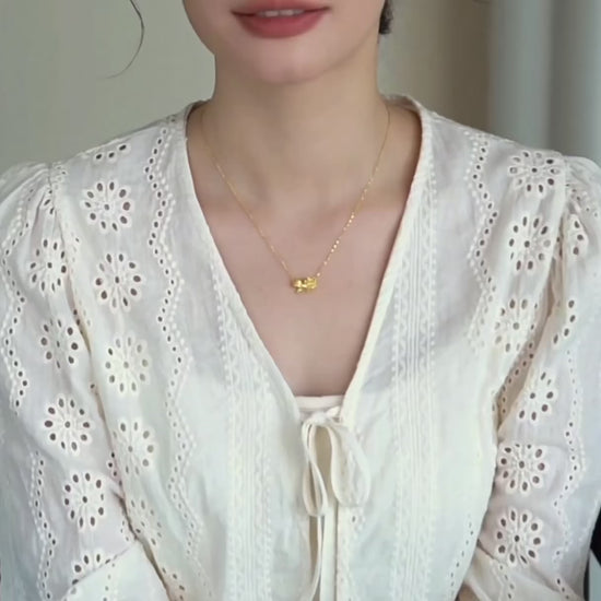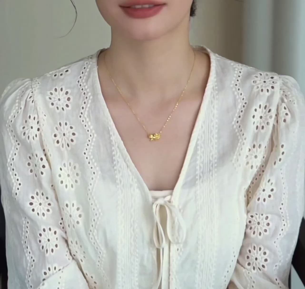 This exquisite necklace features a 24K pure gold pendant shaped as a delicate butterfly bow tie, combining elegance with symbolic charm. Crafted with precision, it offers a luxurious shine and lasting durability. Ideal as a thoughtful gift, this pendant adds a sophisticated touch to any outfit, making it perfect for special occasions or daily wear.