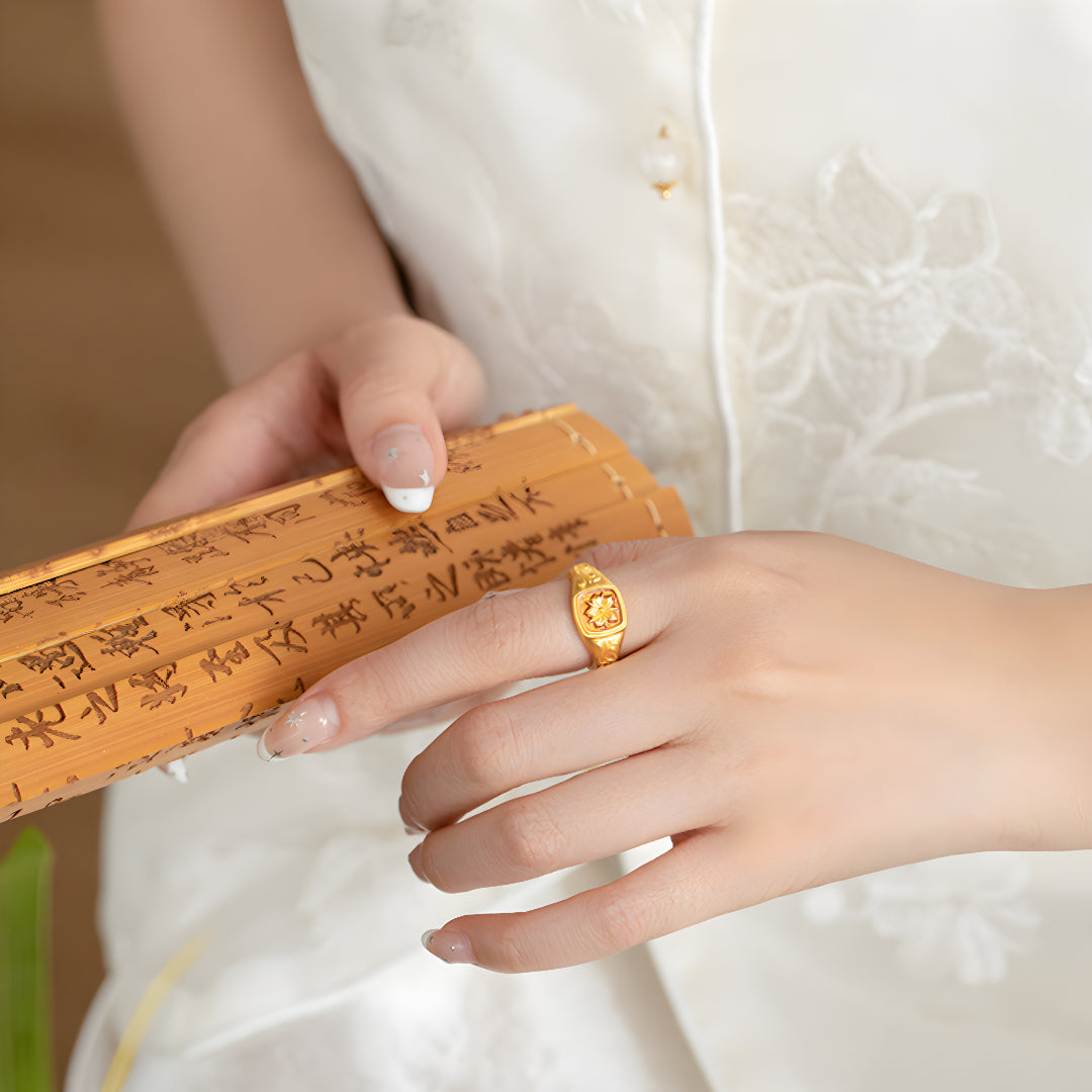24K Pure Gold Flower Ring enamel Band Stacking Ring
