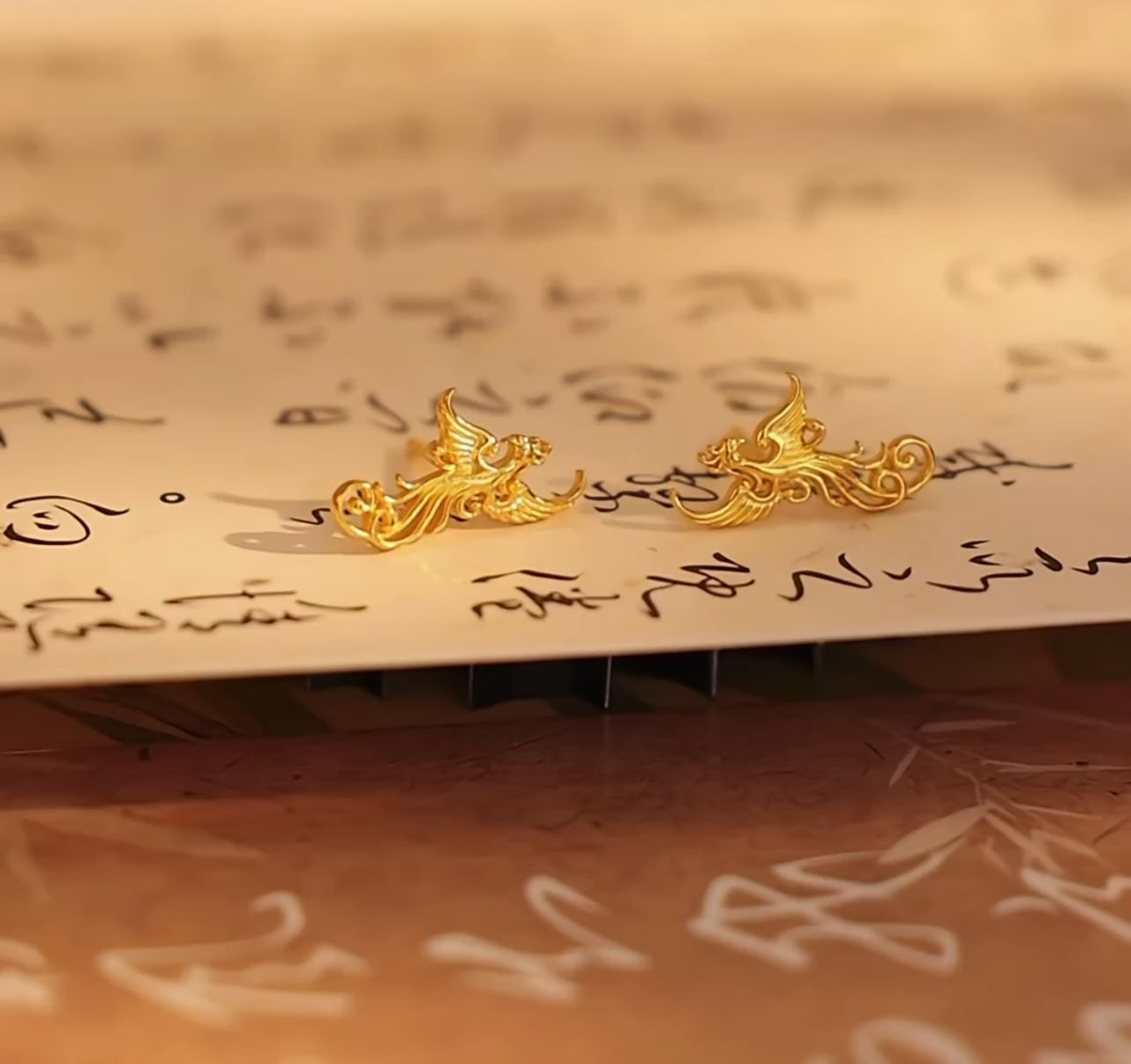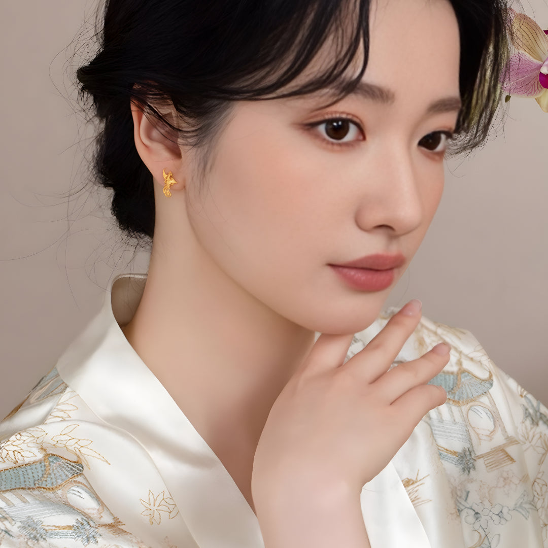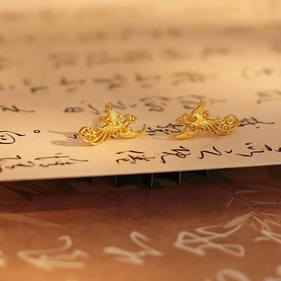 These 24K Pure Gold Flying Phoenix Wedding Bridal Stud Earrings showcase expert craftsmanship through their intricate design symbolizing rebirth and prosperity. Crafted from high-purity gold, they offer lasting shine and hypoallergenic comfort, making them an elegant and meaningful choice for brides on their special day.