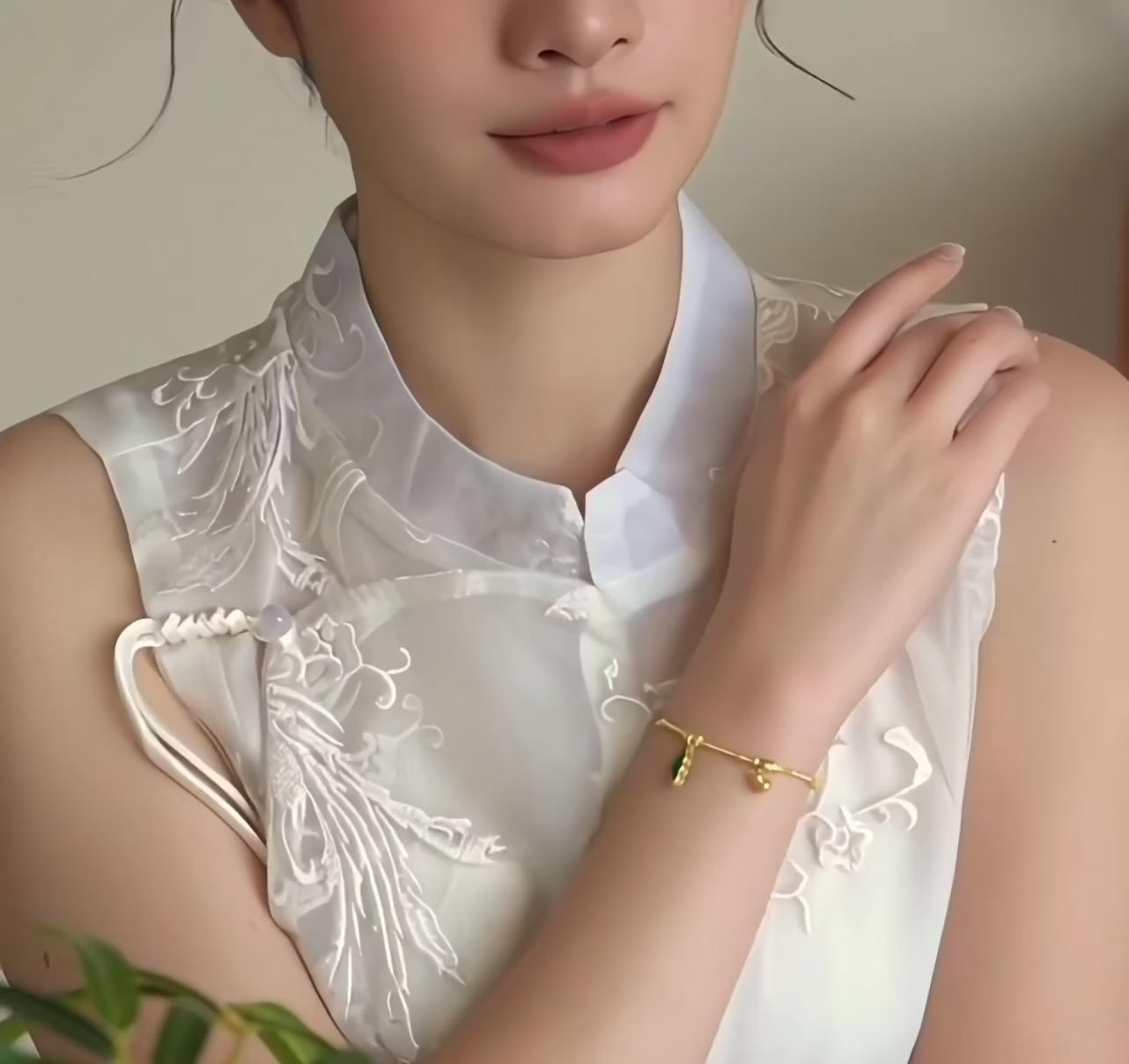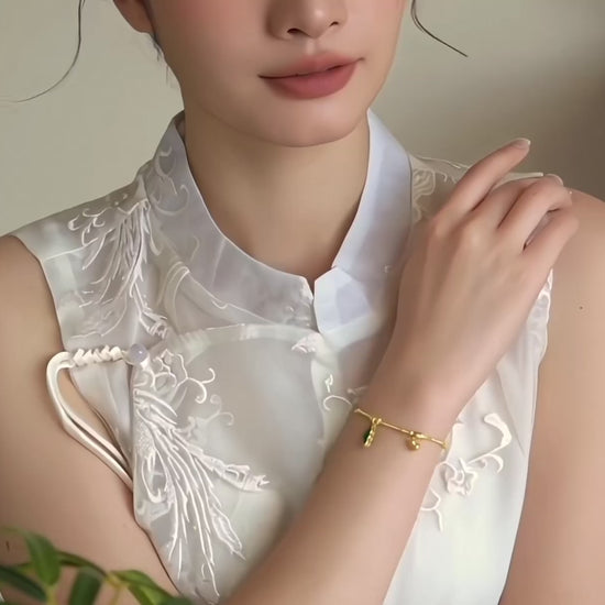 This 24k pure gold bracelet features exquisite green jade peas and a delicately crafted lucky gourd charm, combining symbolic meaning with refined craftsmanship. The natural jade represents prosperity and harmony, while the gourd charm is traditionally associated with good fortune and protection. Expertly designed, this piece offers both elegance and cultural significance, making it an ideal choice for those seeking a meaningful accessory that blends timeless beauty with positive energy.