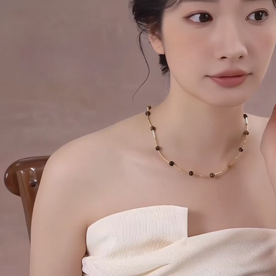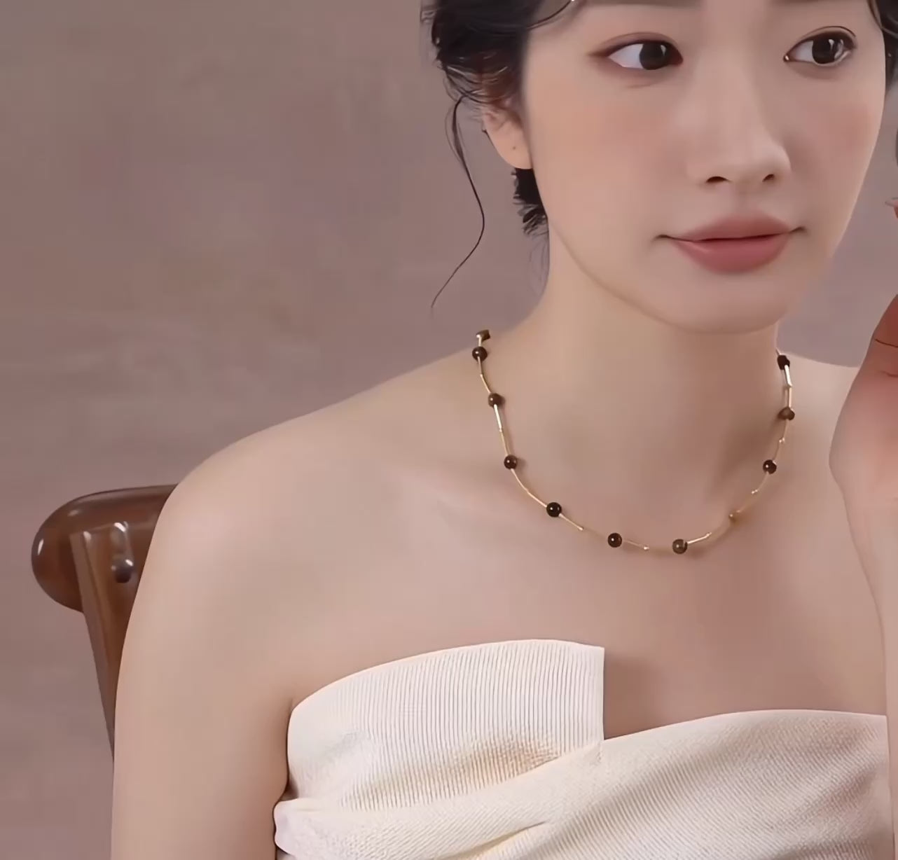 24K Pure Gold Maillard Beads Handmade Golden Tiger Eye Stone necklace