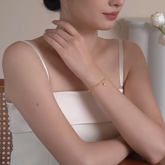 24K Pure Gold Moissanite Star and Planet Charm Fairy Tale Double Chain Bracelet