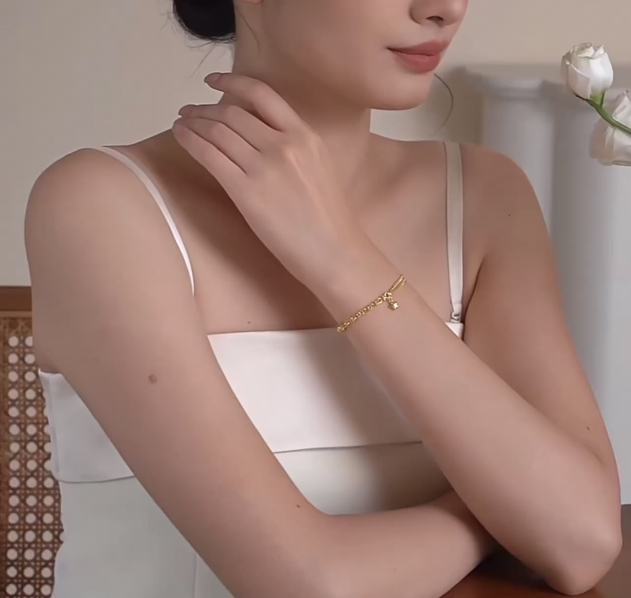 Elevate your jewelry collection with the 24K Pure Gold Moissanite Star and Planet Charm Fairy Tale Double Chain Bracelet. Featuring a delicate double chain design, this bracelet showcases intricately crafted star and planet charms set with brilliant moissanite stones. The 24K pure gold finish ensures lasting shine and hypoallergenic comfort, making it perfect for daily wear or special occasions. Its celestial motif combines elegance with a touch of whimsy, adding sophistication and charm to any ensemble.