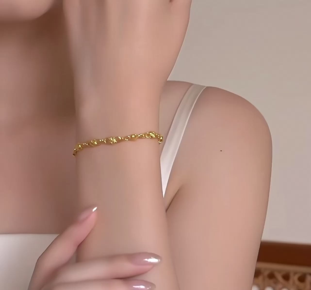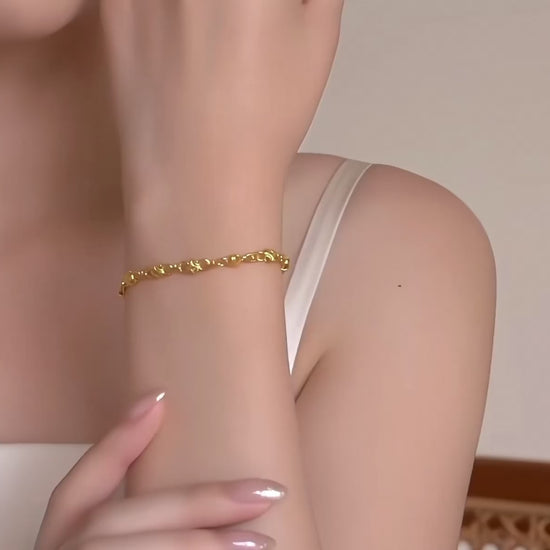 Crafted from 24K pure gold, this Moon and Star dangle charm bracelet combines elegance with symbolism. The delicate charms evoke celestial beauty, perfect for daily wear or special occasions. Designed to inspire wishes and dreams, the bracelet’s refined craftsmanship ensures lasting shine and durability. Its versatile style complements both casual and formal outfits, making it a meaningful addition to any jewelry collection.
