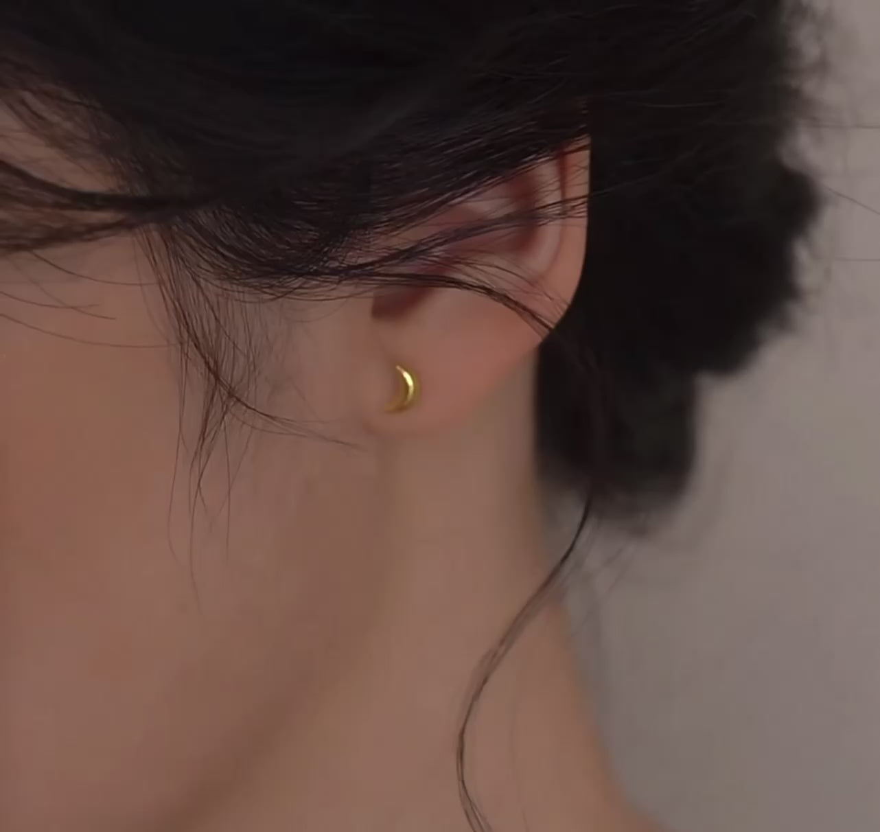 24K Pure Gold Moon Star Ball Minimal Minimalist Stud Earrings Mix and Match
