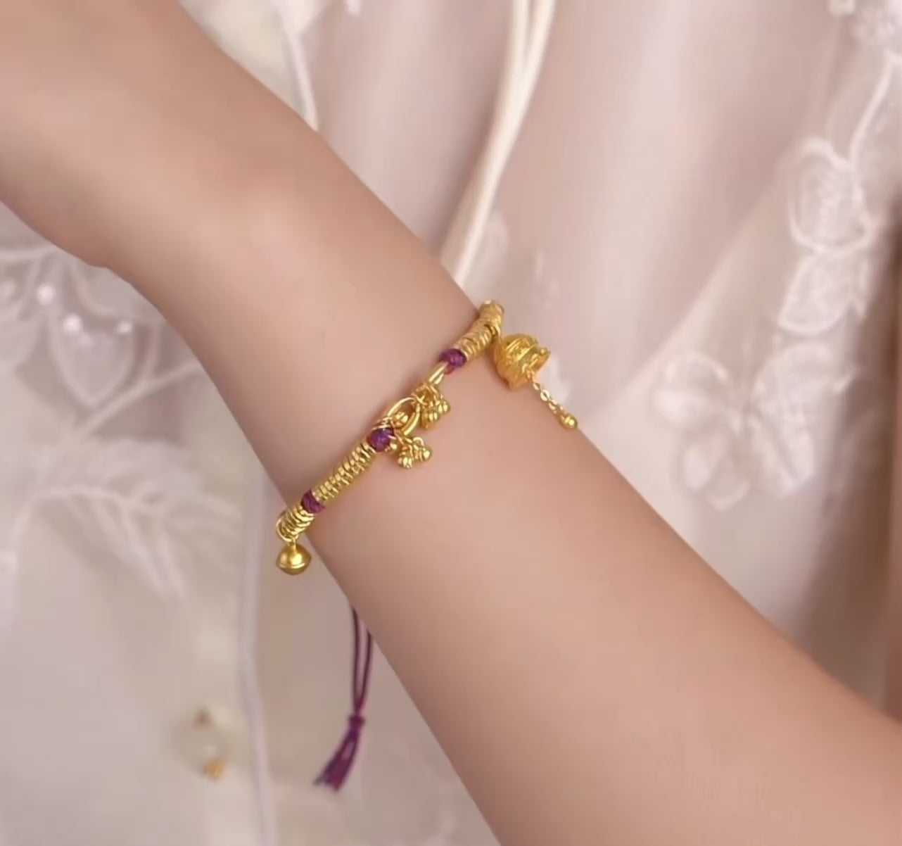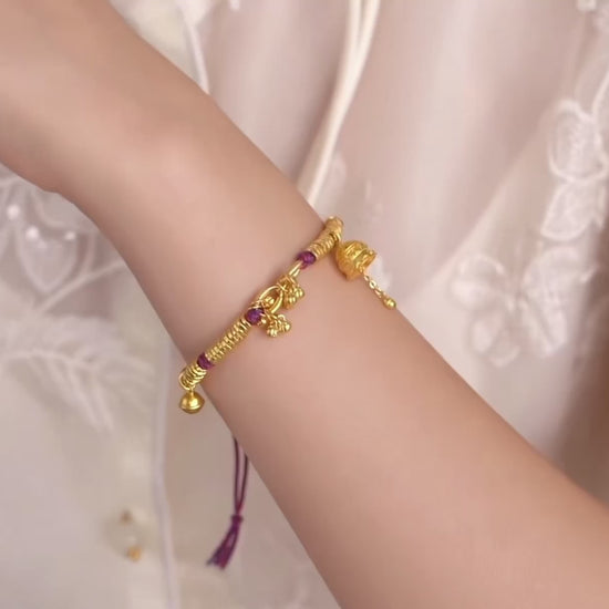 24K Pure Gold Peace Bell winding Lucky beads Rope Braided bracelet