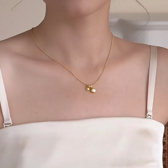 24K Pure Gold Star Charm Zircon Handmade Pendant Necklace