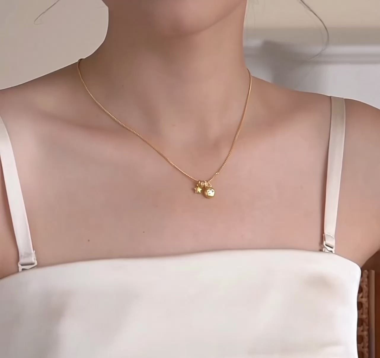 This 24K Pure Gold Star Charm Pendant Necklace features a meticulously handcrafted design accented with sparkling zircon stones. Combining pure gold’s enduring elegance with expertly set zircon details, it offers a refined statement piece that complements both everyday and formal wear. Its delicate craftsmanship ensures a lightweight feel while providing lasting durability and shine. Ideal for those seeking a sophisticated accessory with a timeless star motif.