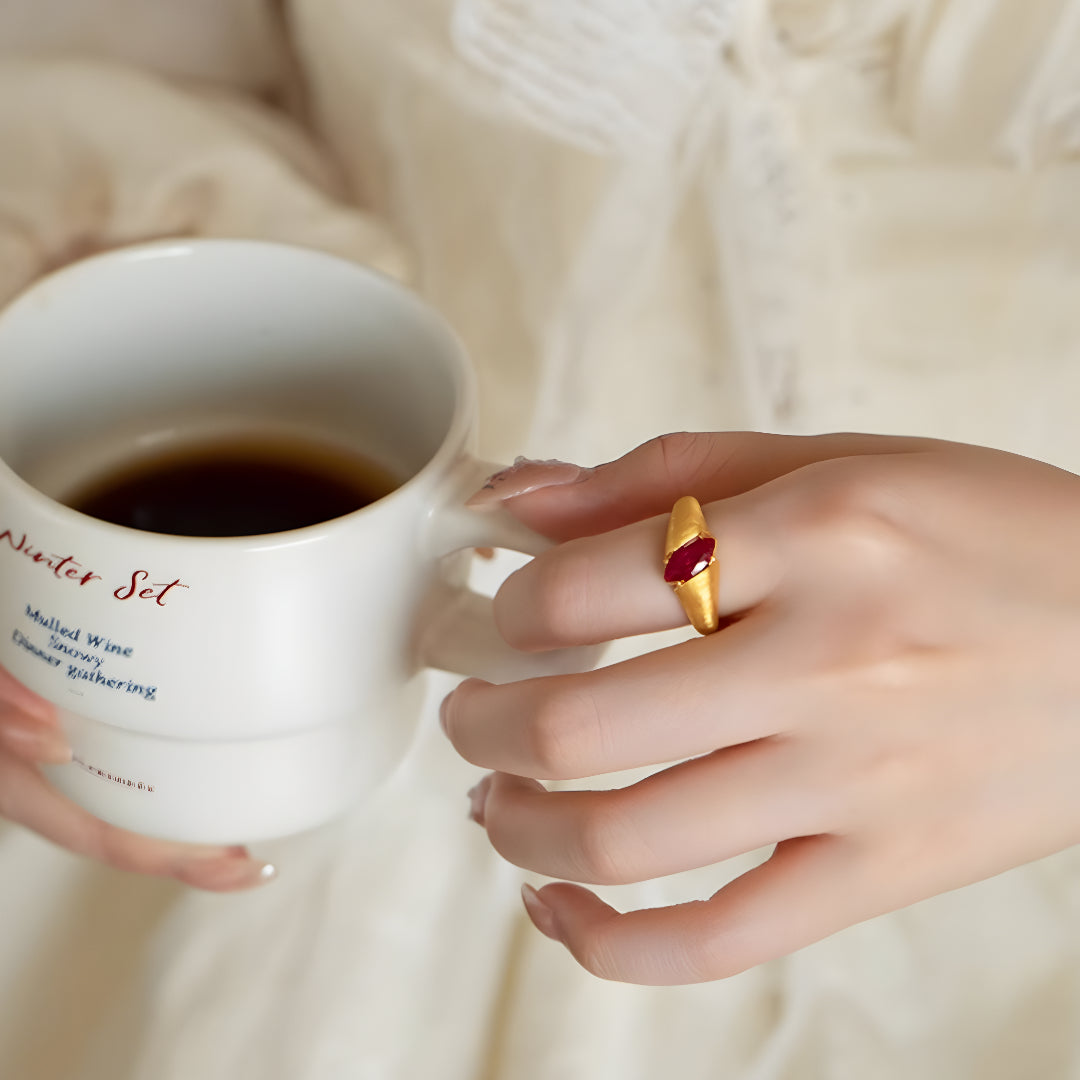 24K Pure Gold Synthetic Ruby Stacking Ring