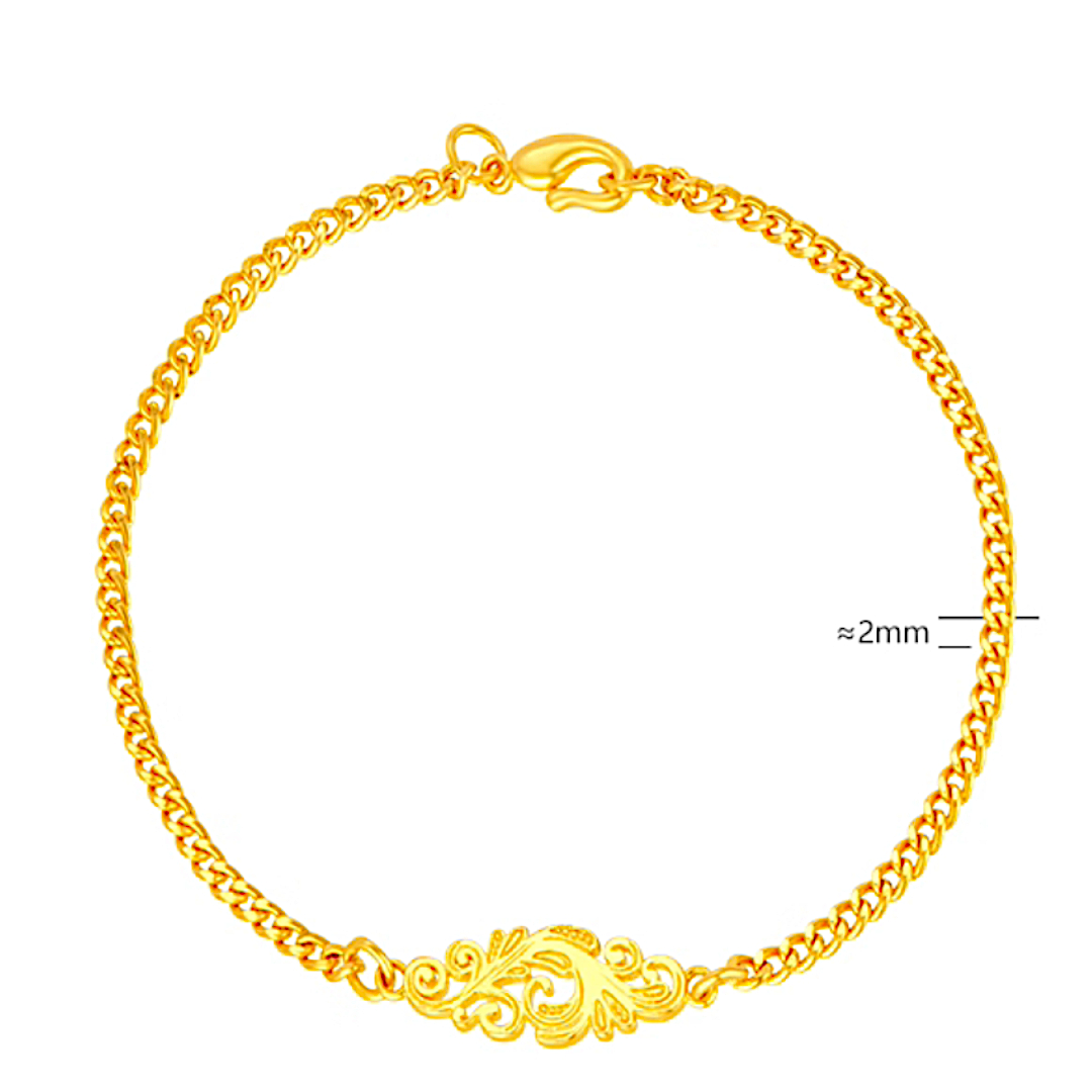 24k Pure 999 Gold Handmade Phoenix Feather Cuban Chain Bracelet