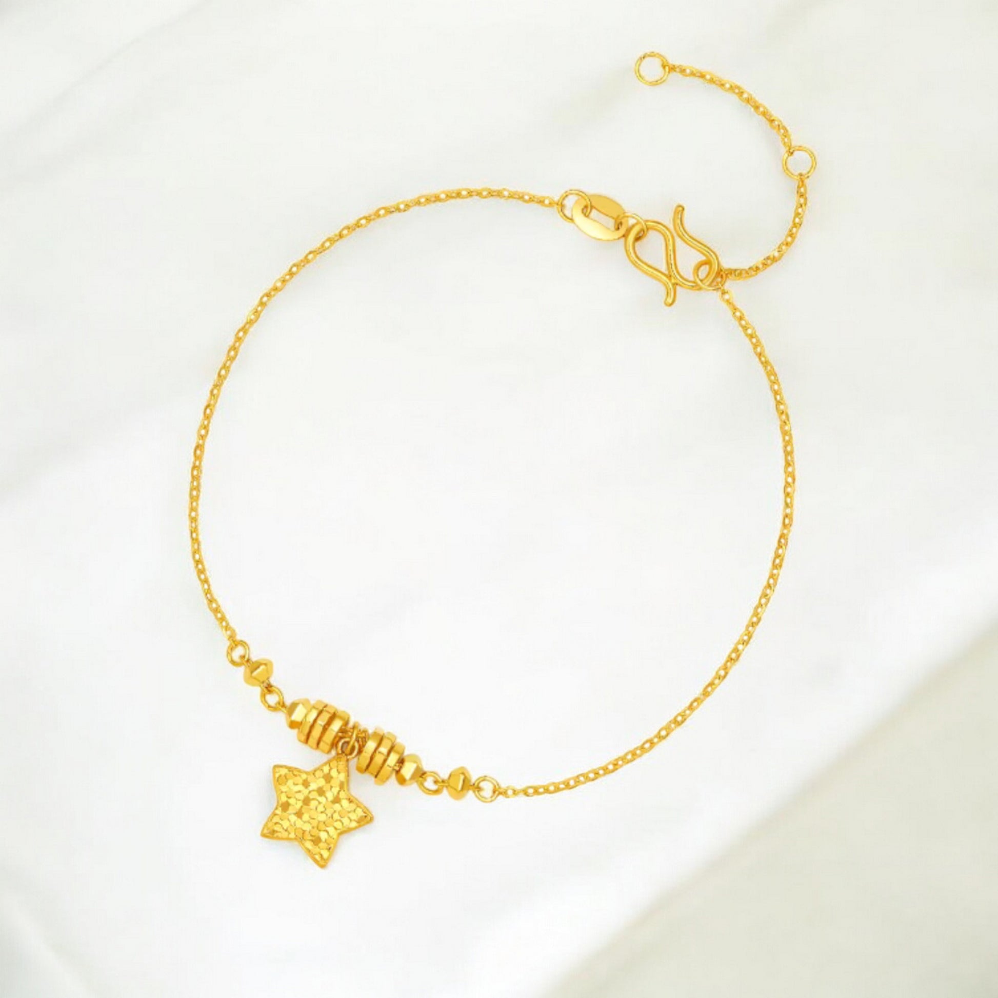 24K Real 5G 999 Gold Sparkling Star Charm Bracelet