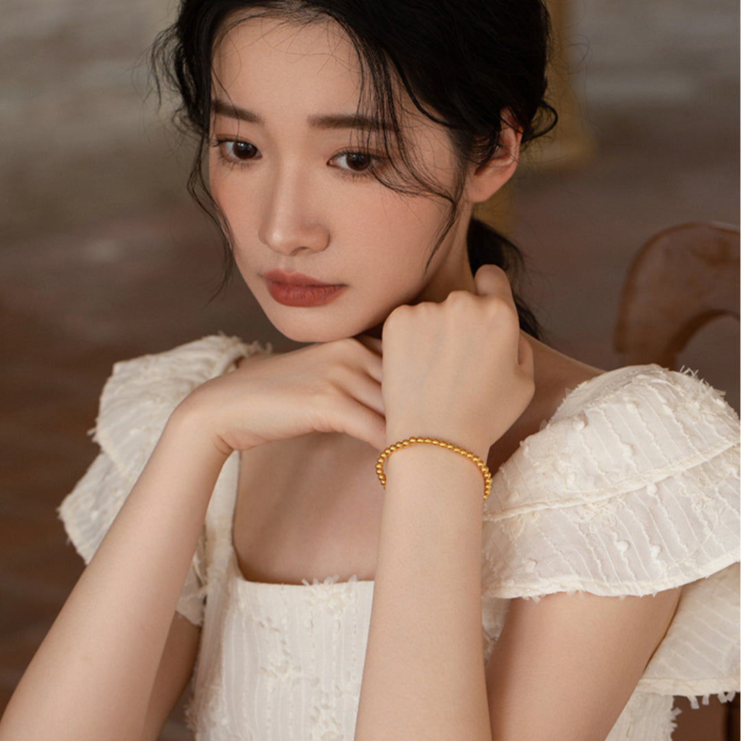 24K Real Gold 5D Hard Gold Minimal Minimalist Beads Bracelets