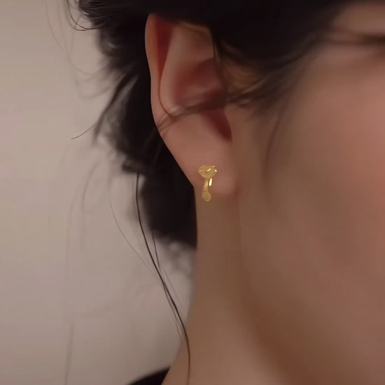 24K Real Gold 5G Gold Ruyi Blessing Good Luck Stud Earrings